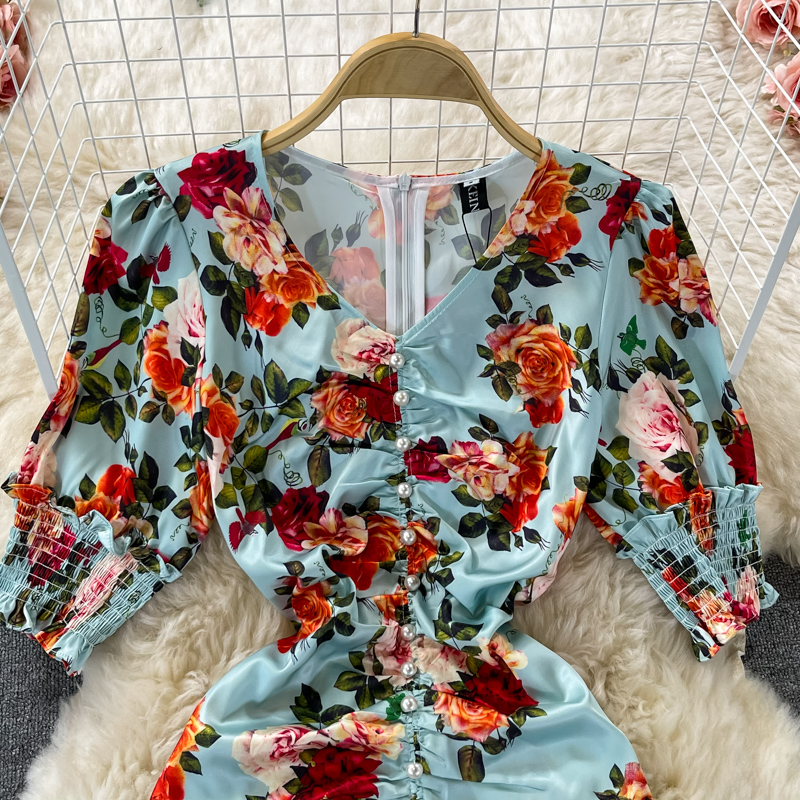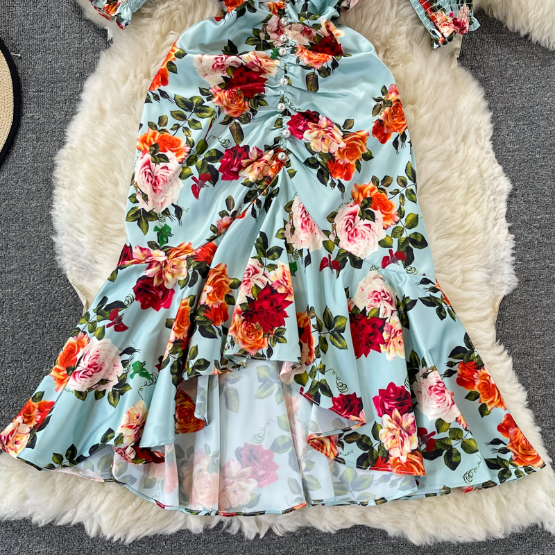 Cheap Dresses, Buy Quality Women’s Clothing Directly from China Suppliers:Summer Women Floral Dress Vintage V Neck Short Puff Sleeve High Waist Ruffle Mermaid Vestidos Elegant Party Robe Female New
