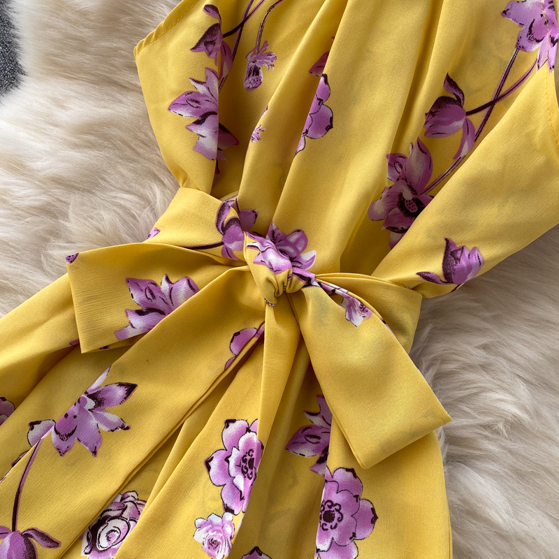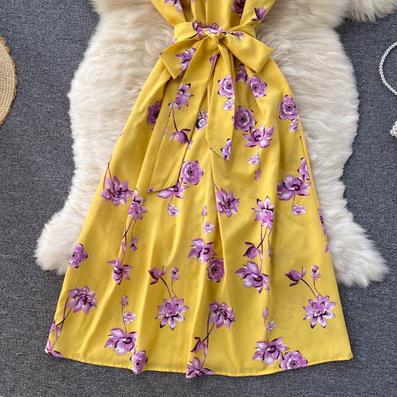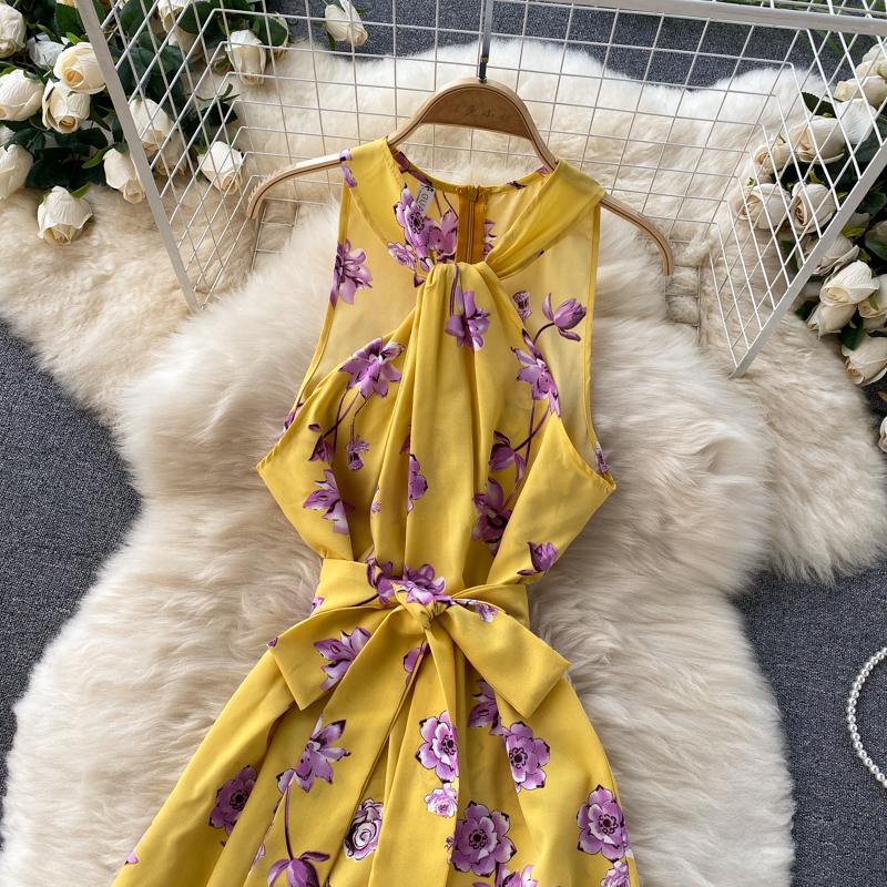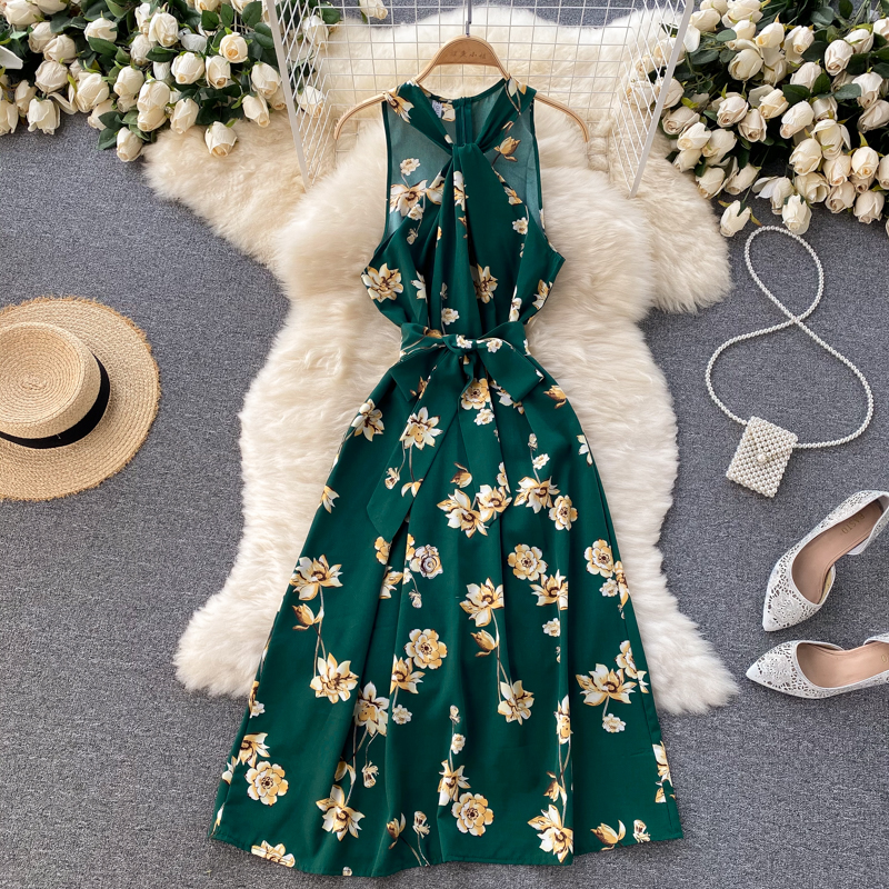 Green/Red/Yellow Floral Midi Dress For Women Summer Sexy Halter Twist Casual Beach Vestidos Elegant Hollow Out Party Robe