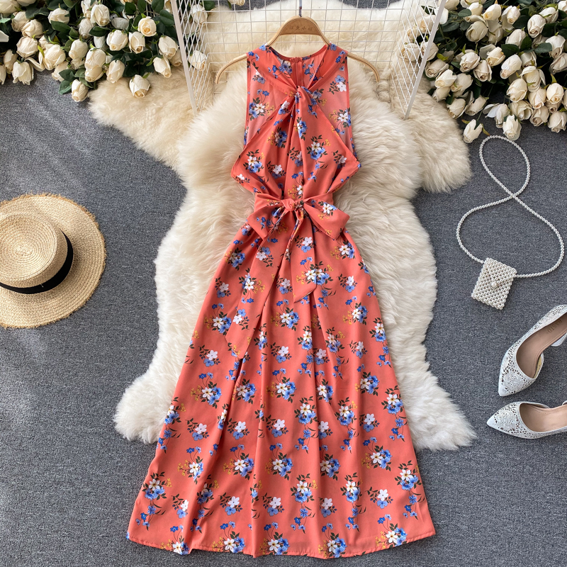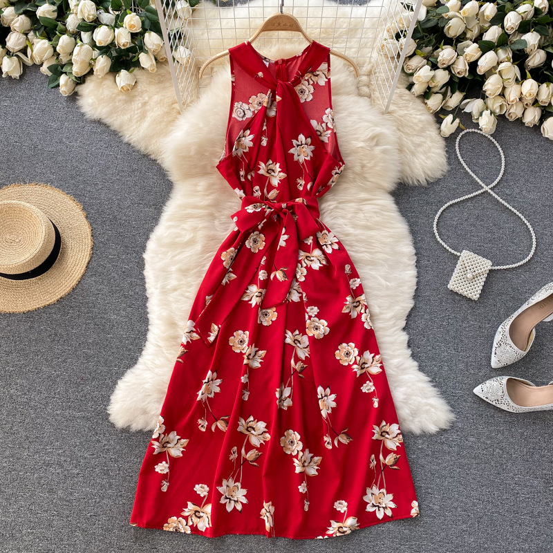 Cheap Dresses, Buy Quality Women’s Clothing Directly from China Suppliers:Green/Red/Yellow Floral Midi Dress For Women Summer Sexy Halter Twist Casual Beach Vestidos Elegant Hollow Out Party Robe