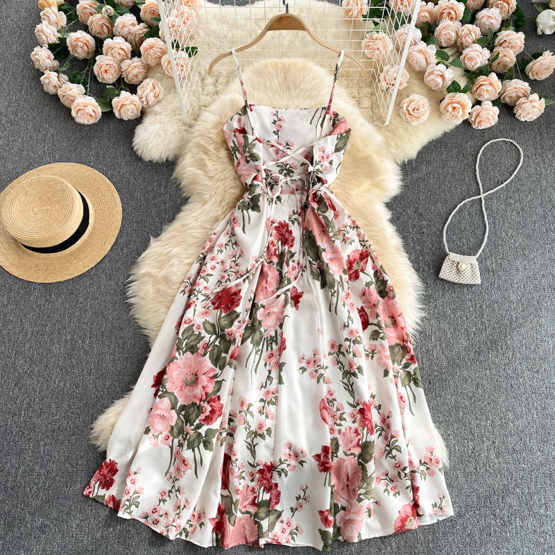 Summer Beach Spaghetti Strap Long Dress Women Vacation Party Vestidos Sexy Open Back High Waist Slim Robe Female Fashion