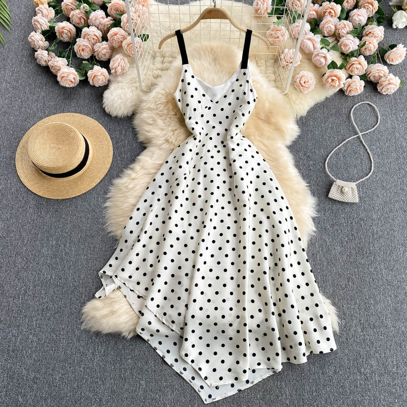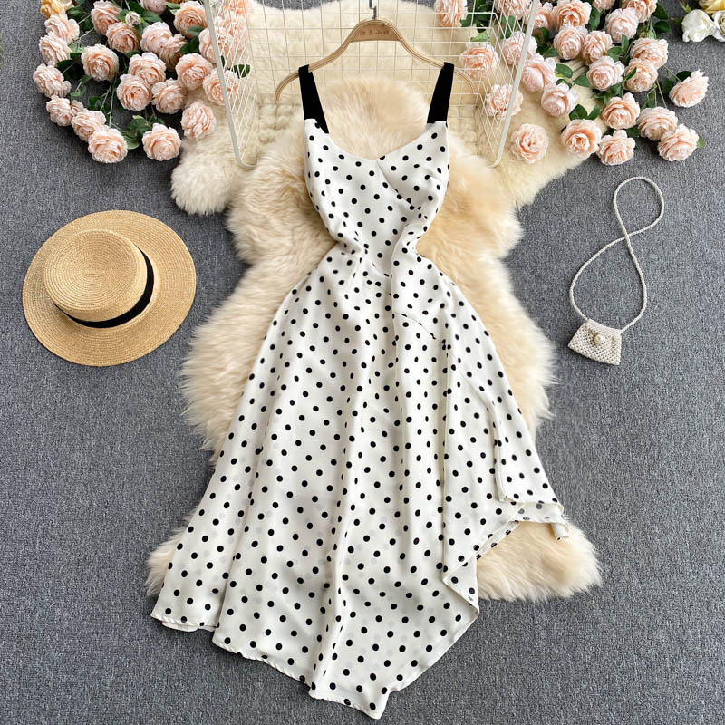 Cheap Dresses, Buy Quality Women’s Clothing Directly from China Suppliers:Women White Polka Dot Irregular Dress Sexy Beach Vacation Party Vestidos Summer Casual Female High Waist Slim Robe New
