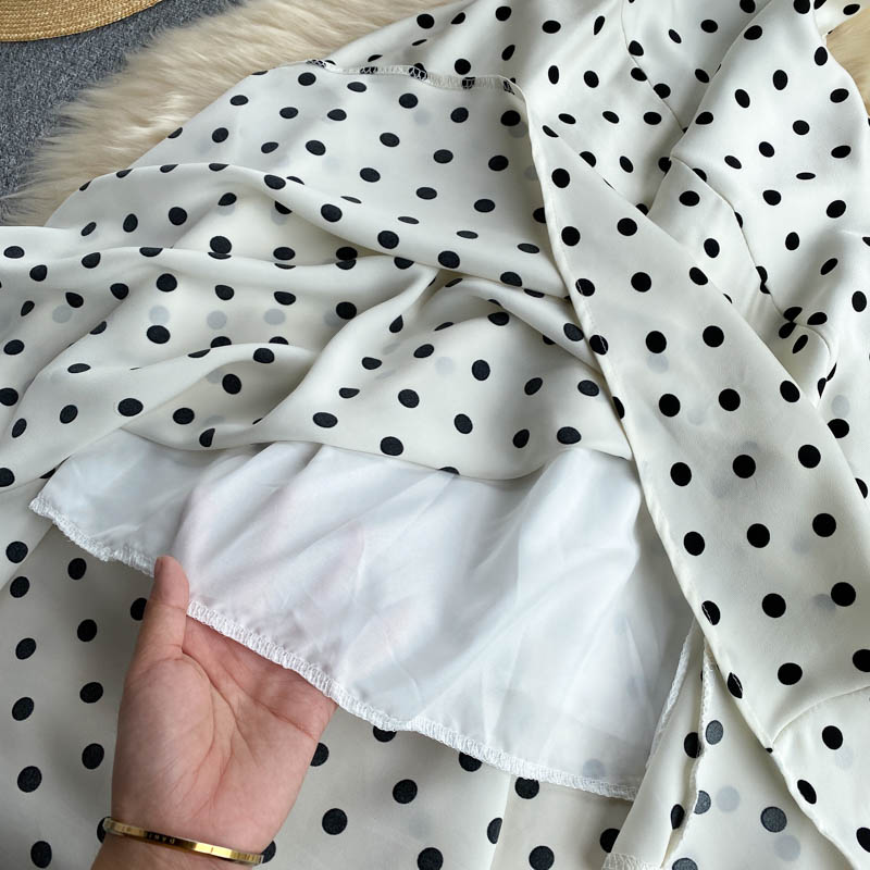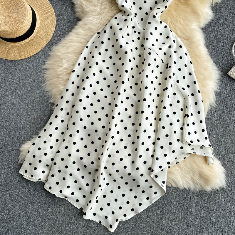 Women White Polka Dot Irregular Dress Sexy Beach Vacation Party Vestidos Summer Casual Female High Waist Slim Robe New