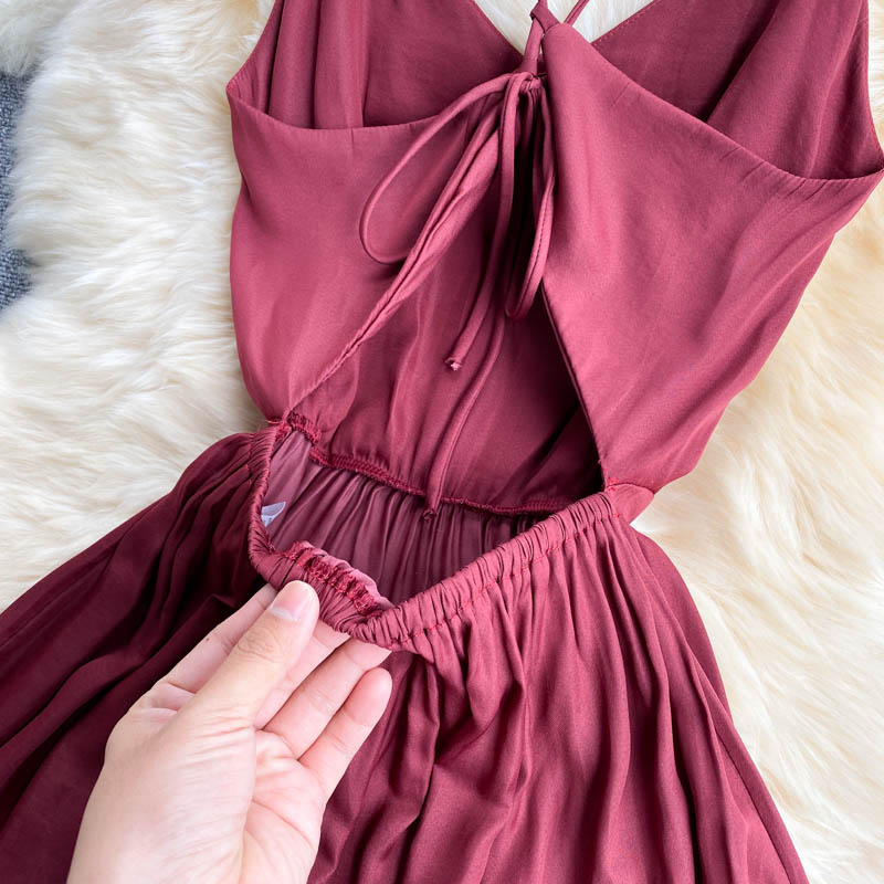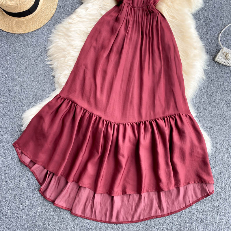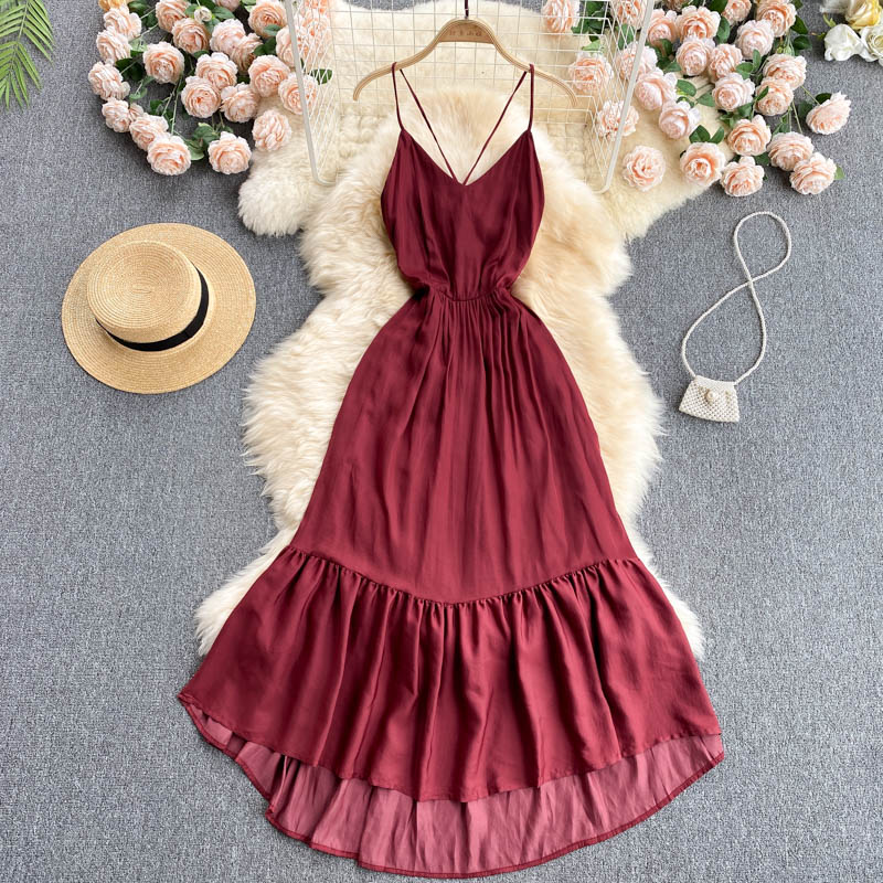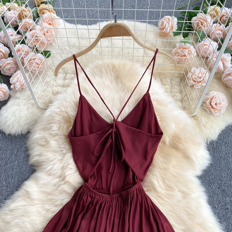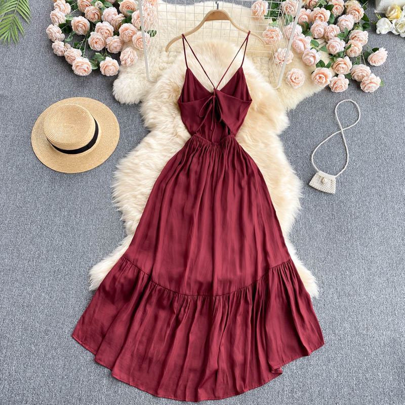 Cheap Dresses, Buy Quality Women’s Clothing Directly from China Suppliers:Women Red Spaghetti Strap Midi Dress Sexy V Neck High Waist Sleeveless Ruffle Casual Vestidos Elegant Beach Party Robe New