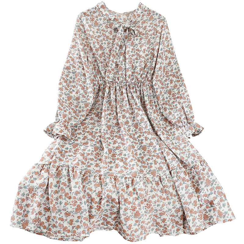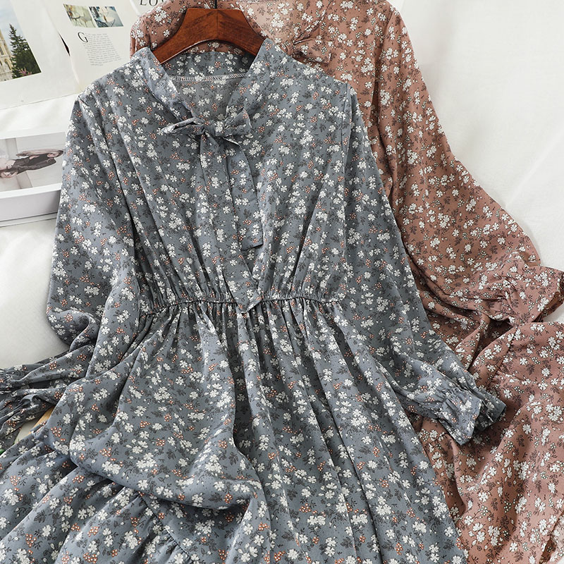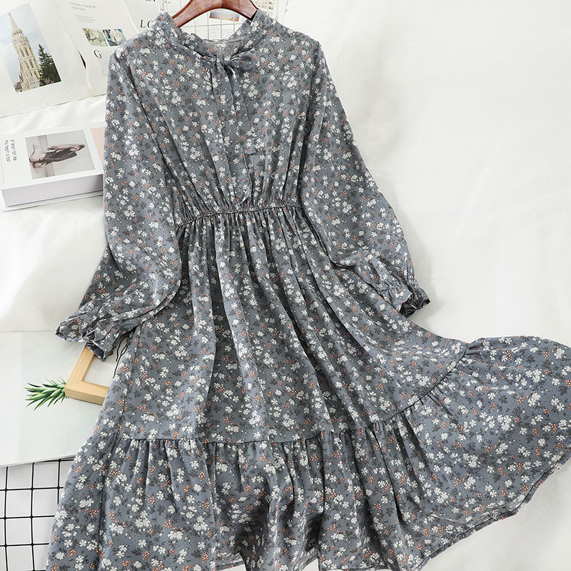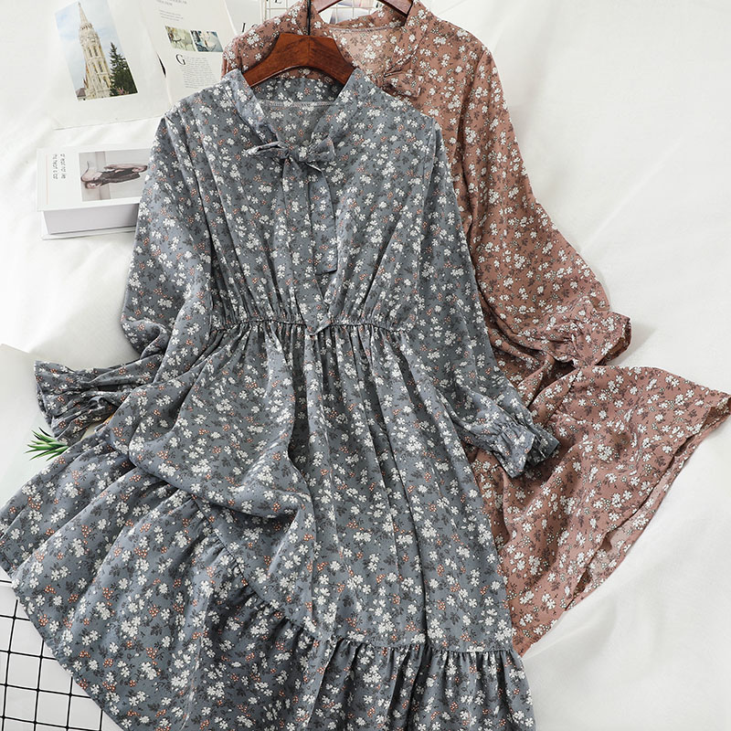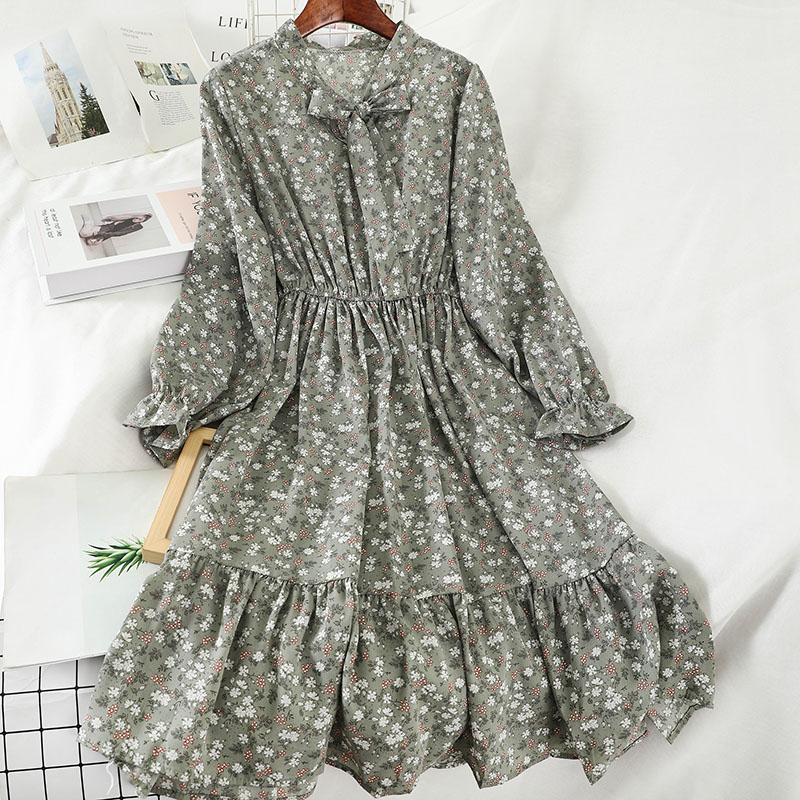 Cheap Dresses, Buy Quality Women’s Clothing Directly from China Suppliers:Sweet Green/Blue/White Print Bow Collar Casual Dress For Women Summer Flare Long Sleeve A Line Ruffle Hem Female Vestidos