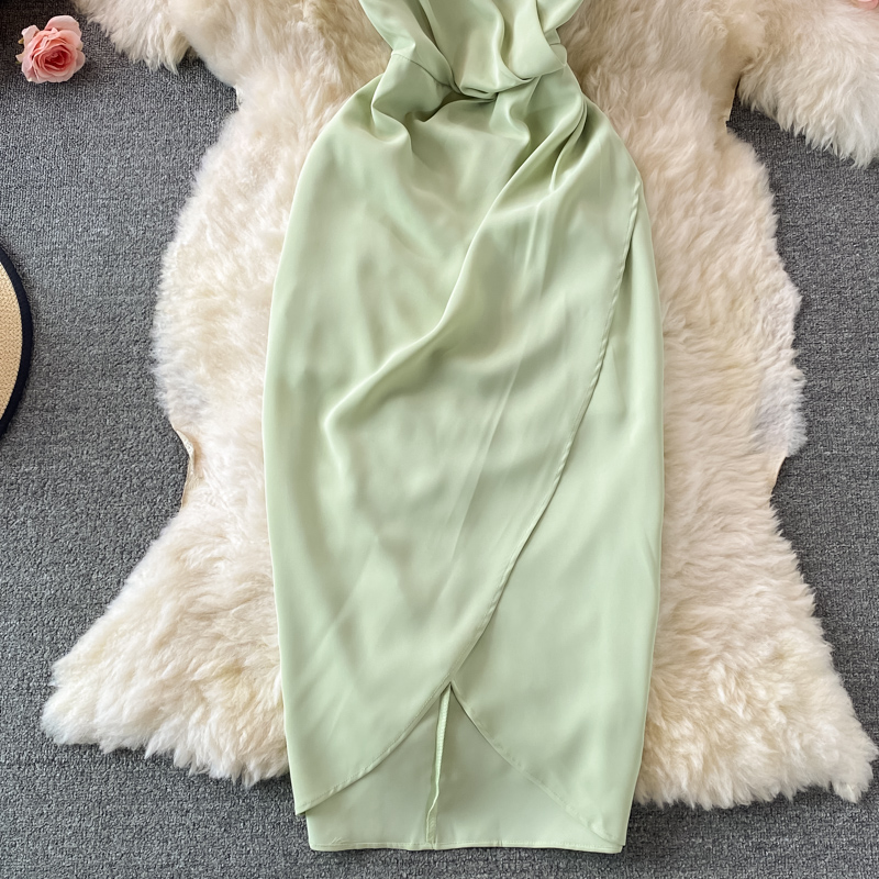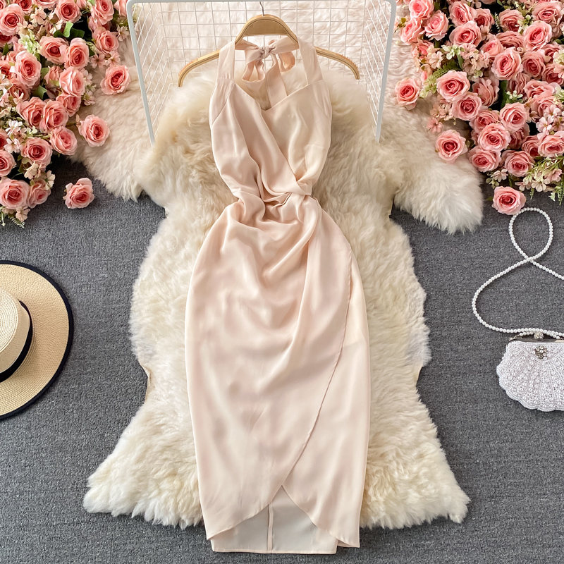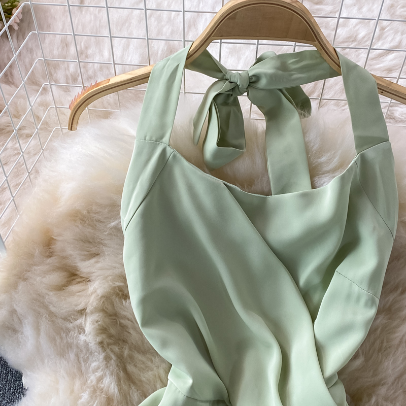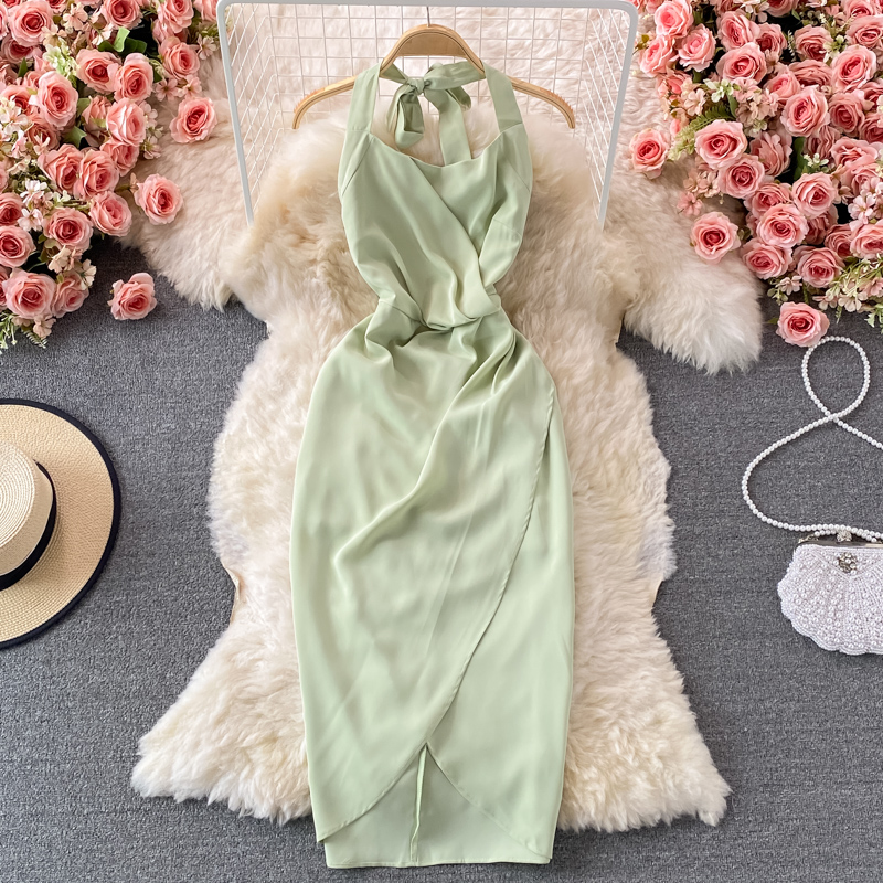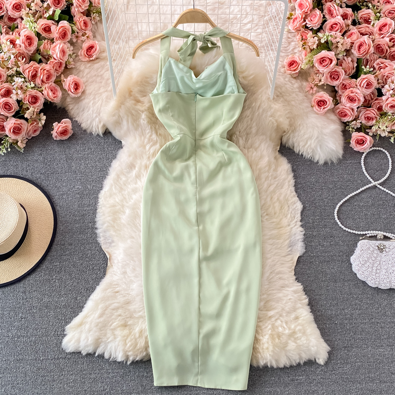 Sexy Halter Spaghetti Strap Bodycon Party Dress Women Summer Green/Beige High Waist Sleeveless Party Vestidos Female Robe
