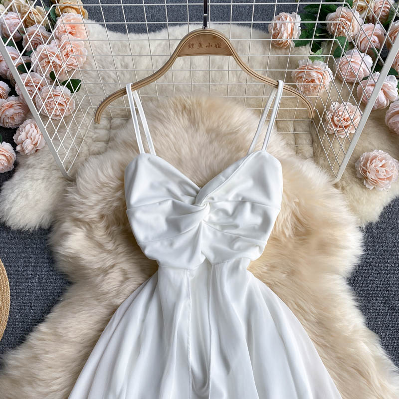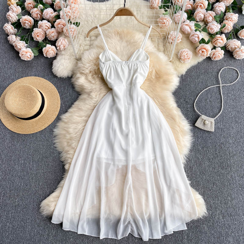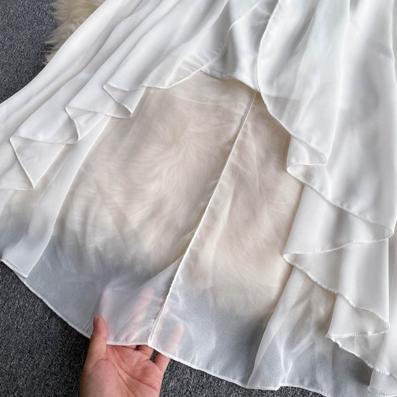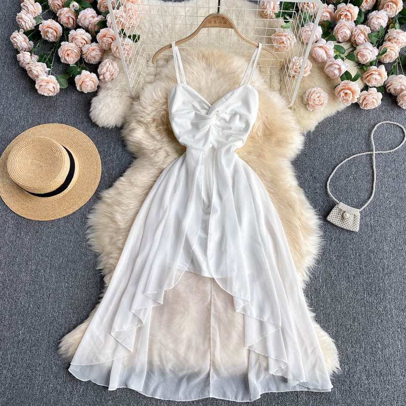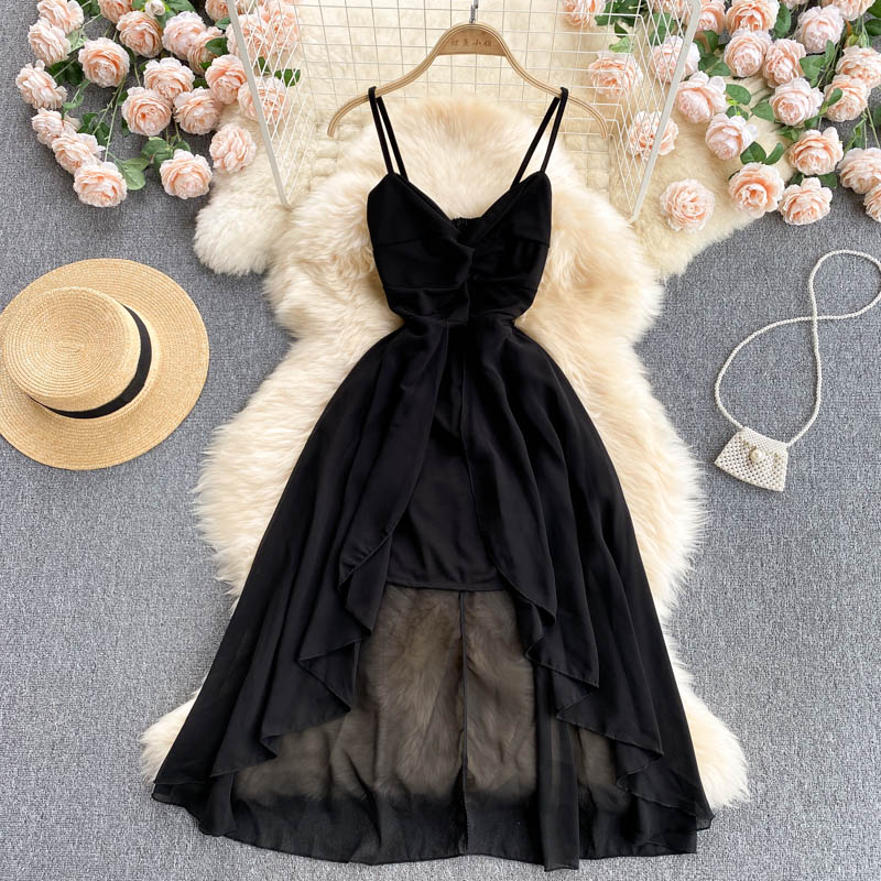 Black/White Irregular Ruffle Midi Dress Women Summer Sexy Spaghetti Strap Vestidos Vacation Beach Party Robe New Fashion
