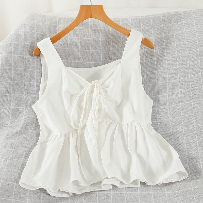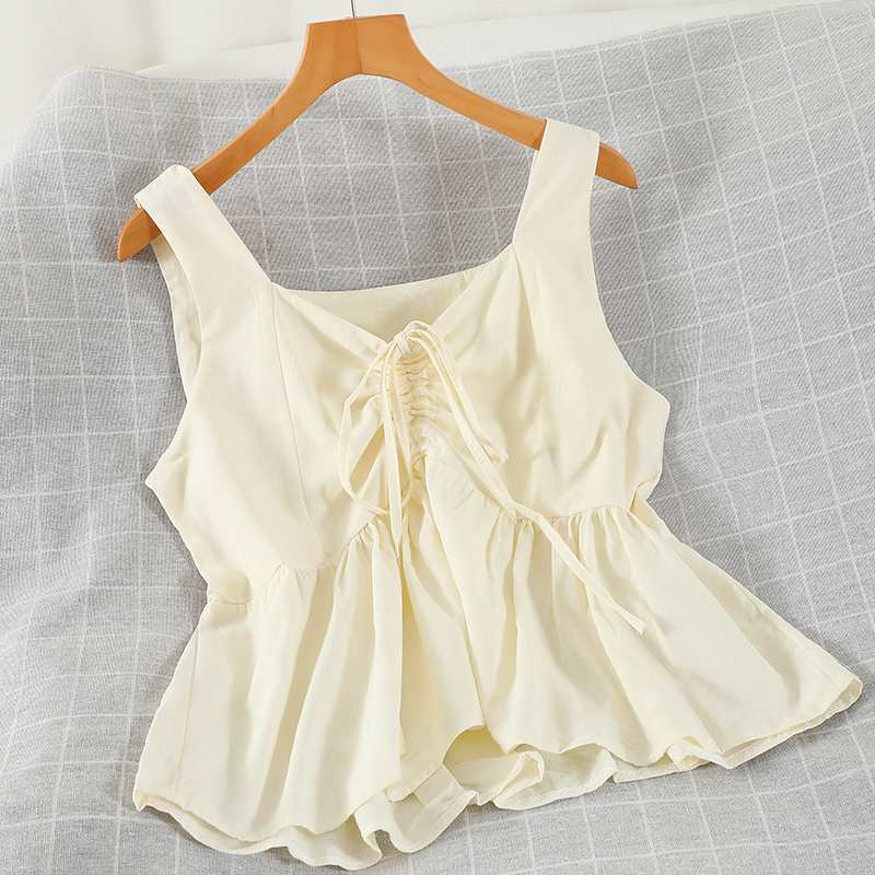 Summer Sexy V-Neck Drawstring Sleeveless Tank Tops Women Casual Loose Short Camis Female White/Blue/Green Shirt New