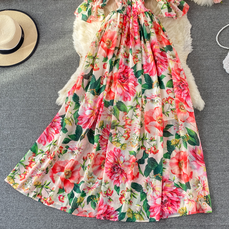 Sexy Floral Printed Spaghetti Strap Long Dress Women Elegant Vacation Party Beach Maxi Vestidos Female Open Back Robe Summer New