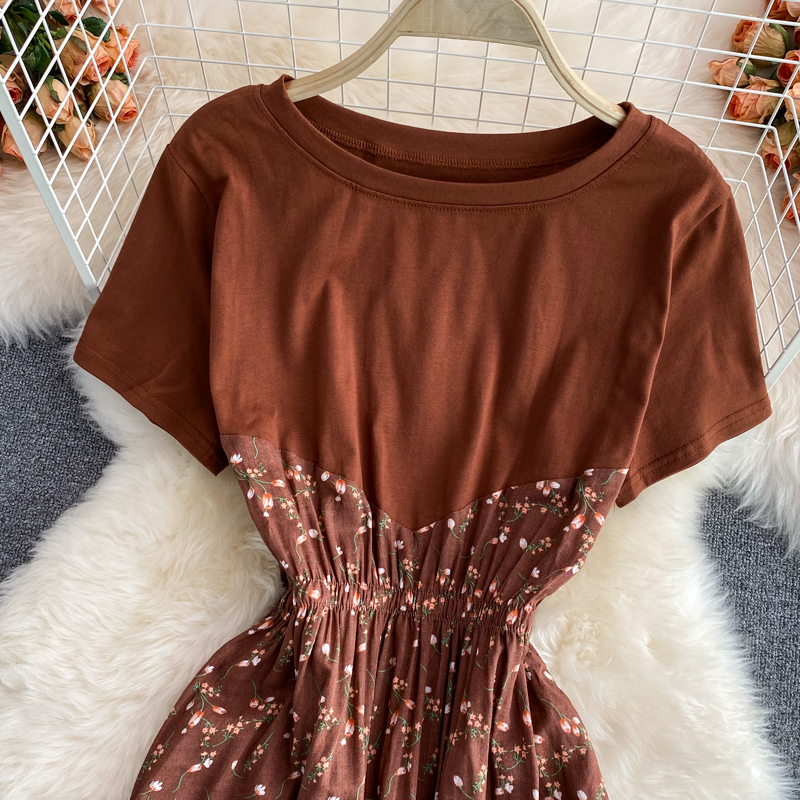 Cheap Dresses, Buy Quality Women’s Clothing Directly from China Suppliers:Summer Brown Printed Patchwork Long Dress For Women Round Neck Short Sleeve High Waist Big Swing Slim Maxi Vestidos New