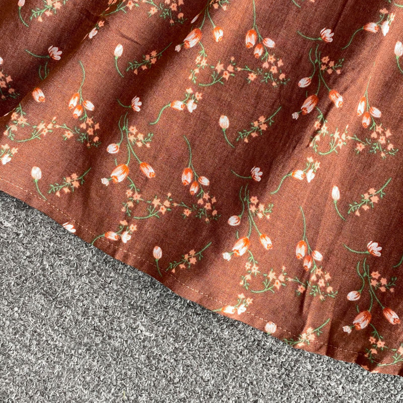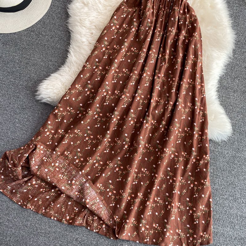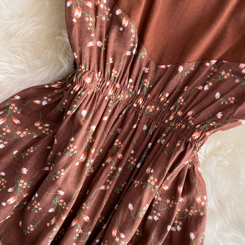 Summer Brown Printed Patchwork Long Dress For Women Round Neck Short Sleeve High Waist Big Swing Slim Maxi Vestidos New