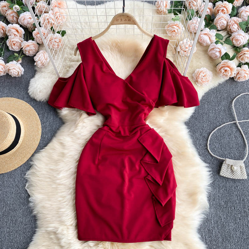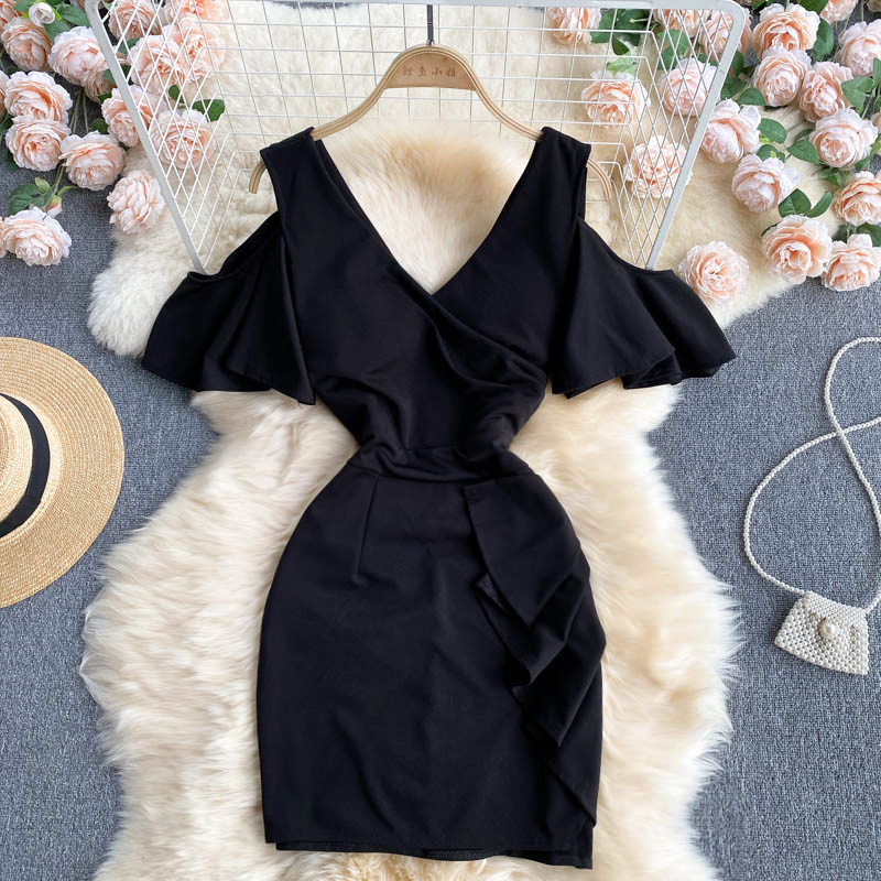 Cheap Dresses, Buy Quality Women’s Clothing Directly from China Suppliers:Sexy Irregular Ruffle Hollow Out Bodycon Dress Summer Women V Neck High Waist Short Sleeve Mini Vestidos Female Robe New