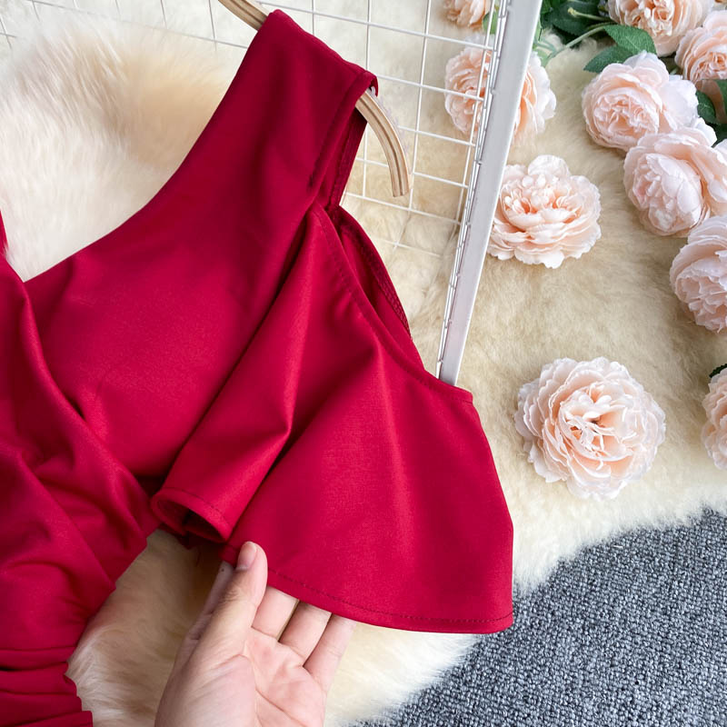 Sexy Irregular Ruffle Hollow Out Bodycon Dress Summer Women V-Neck High Waist Short Sleeve Mini Vestidos Female Robe New