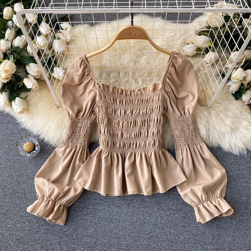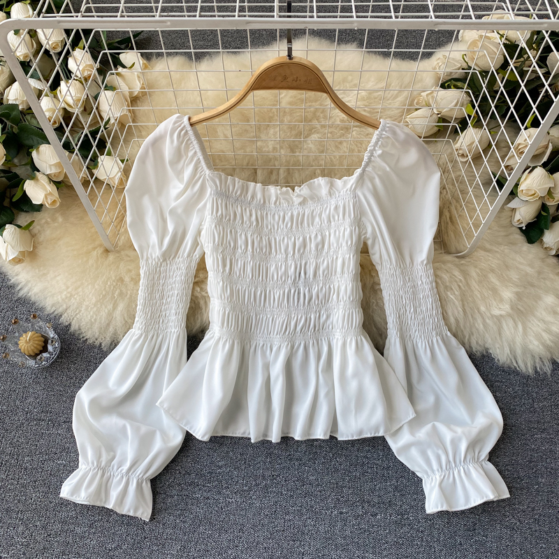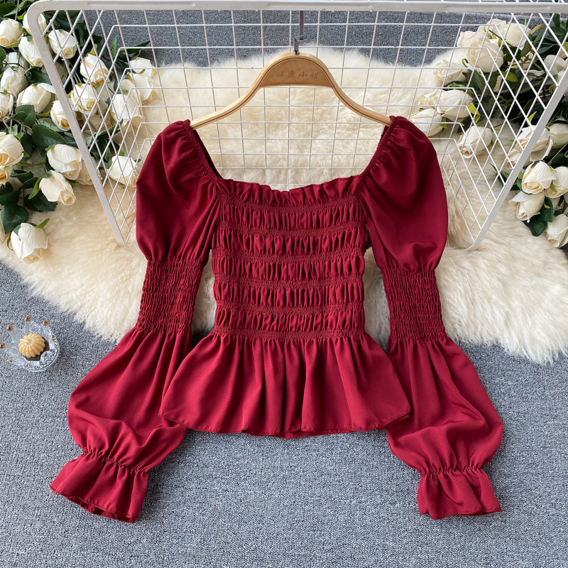 Cheap Blouse, Buy Quality Women’s Clothing Directly from China Suppliers:Casual Square Collar Puff Long Sleeve Short Blouse For Women Spring Autumn Red/Yellow/White Draped Shirt Female Blusas New