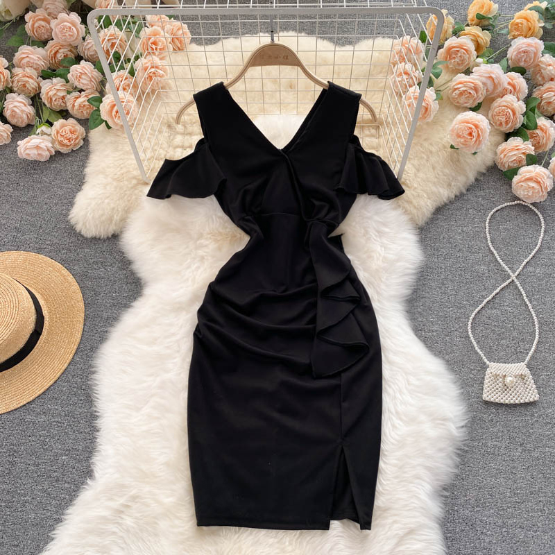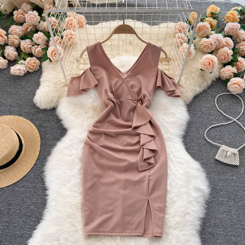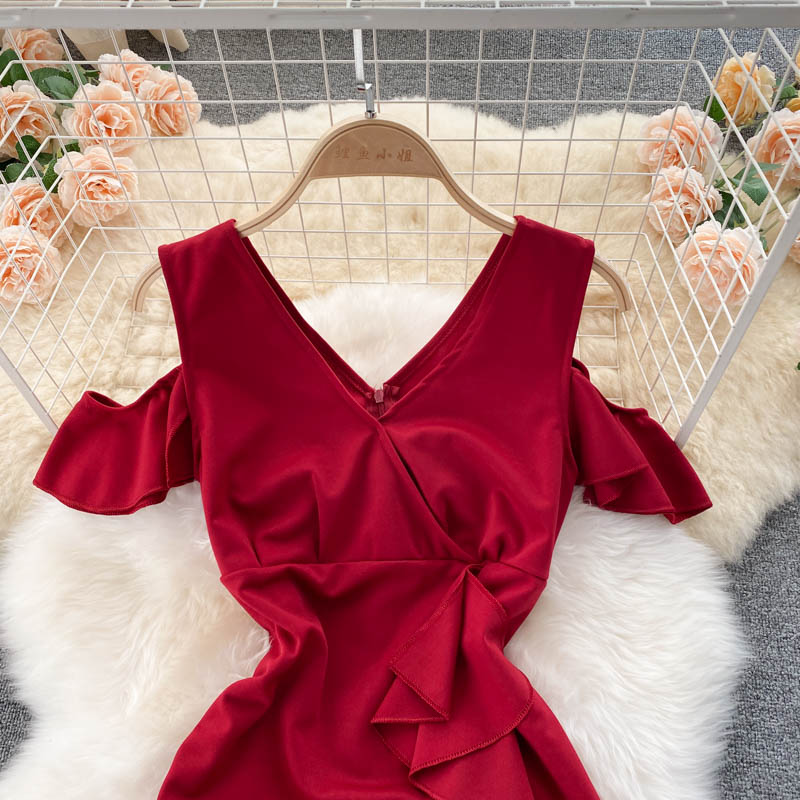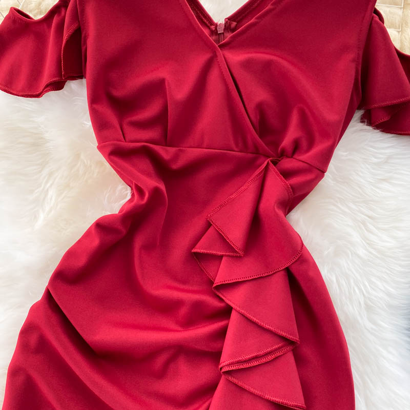 Cheap Dresses, Buy Quality Women’s Clothing Directly from China Suppliers:Summer Sexy Bodycon Mini Dress Women Red/Black/Pink Ruffle V Neck High Waist Off Shoulder Vestidos Club Party Robe New