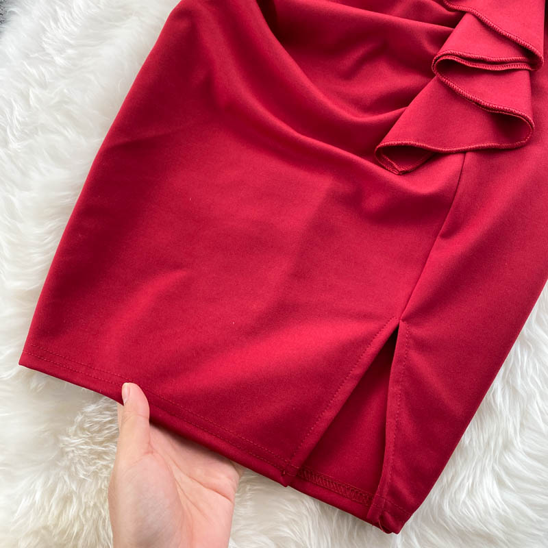 Summer Sexy Bodycon Mini Dress Women Red/Black/Pink Ruffle V-Neck High Waist Off Shoulder Vestidos Club Party Robe New