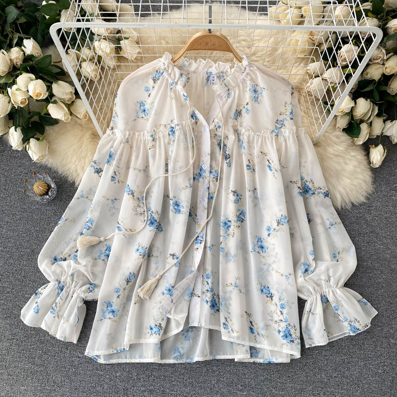 Cheap Shirt, Buy Quality Women’s Clothing Directly from China Suppliers:White Floral Loose Blouse For Women Autumn Casual Flare Long Sleeve Single Breasted Tassel Shirt Female Sweet Tops New