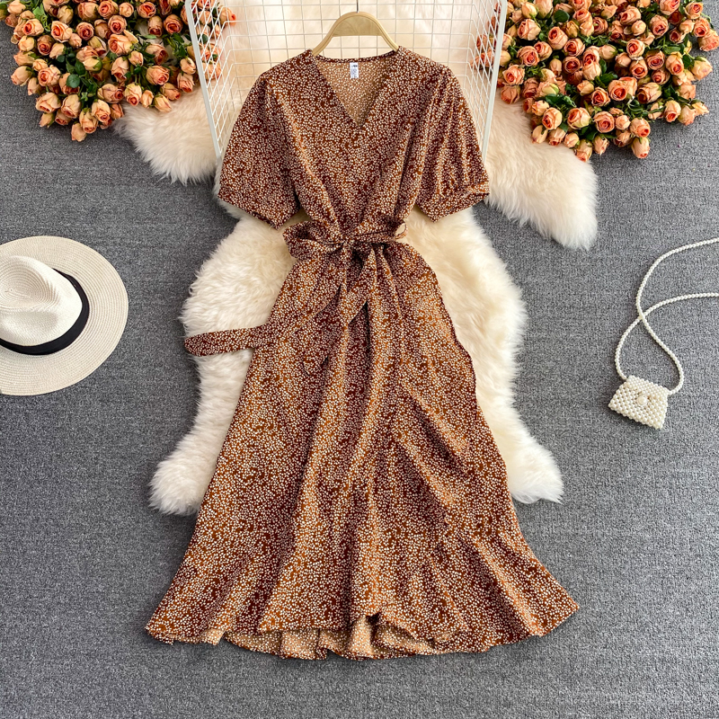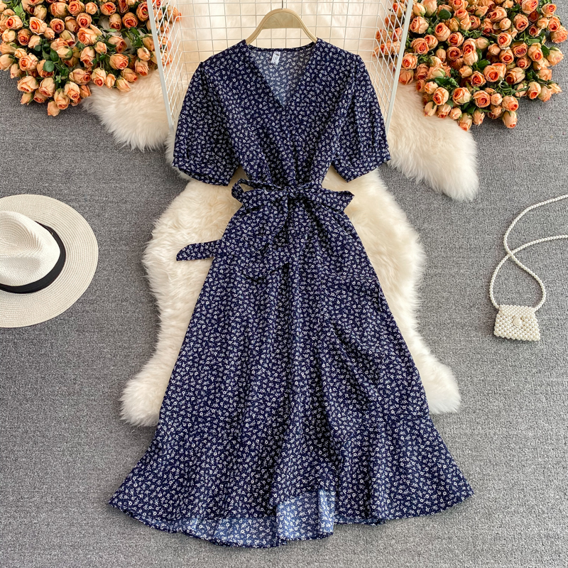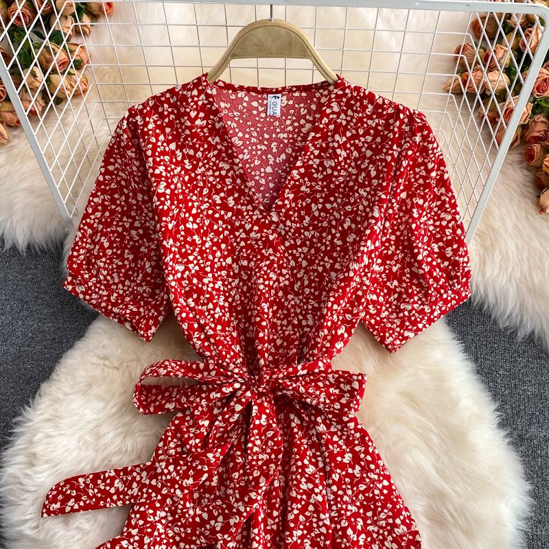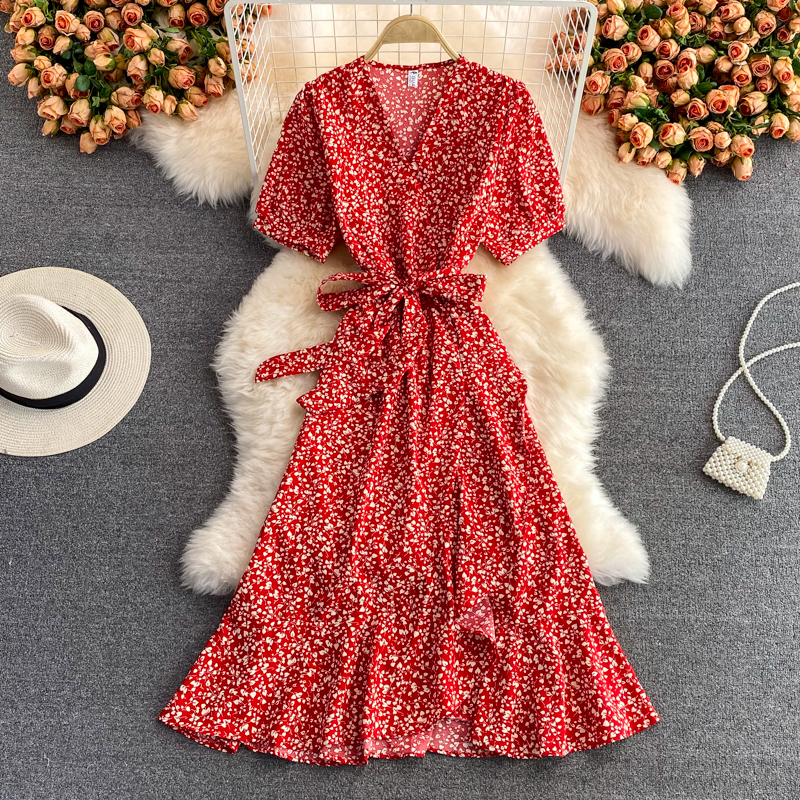 Cheap Dresses, Buy Quality Women’s Clothing Directly from China Suppliers:Women Floral Midi Dress Summer Casual V Neck Short Sleeve High Waist Printed Vestidos Vintage Ruffle Mermaid Robe Fashion