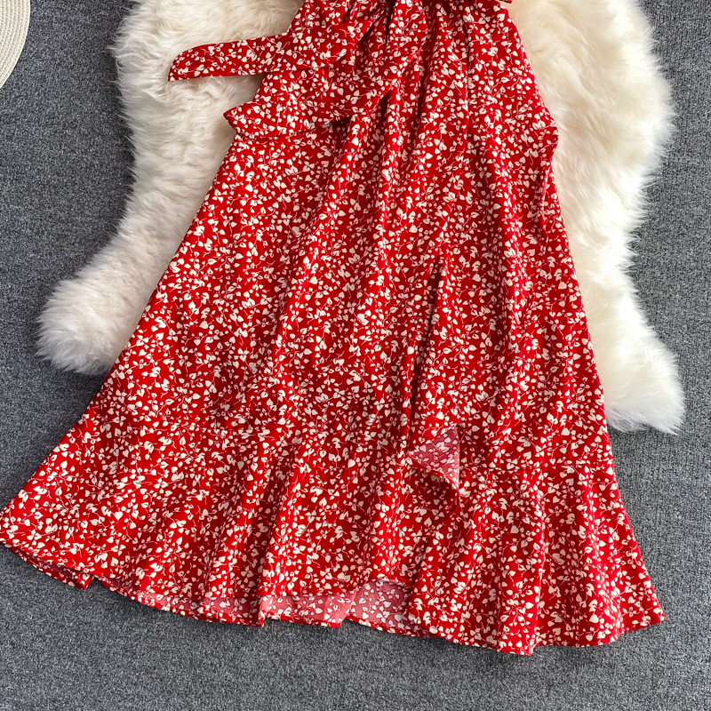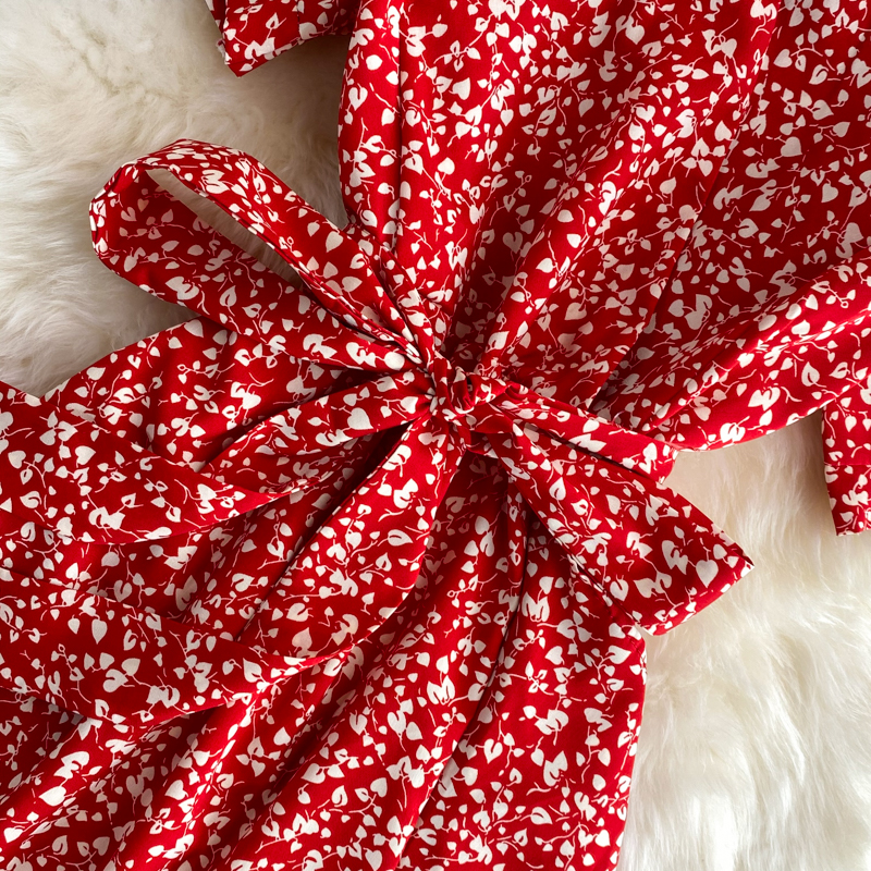 Women Floral Midi Dress Summer Casual V-Neck Short Sleeve High Waist Printed Vestidos Vintage Ruffle Mermaid Robe Fashion