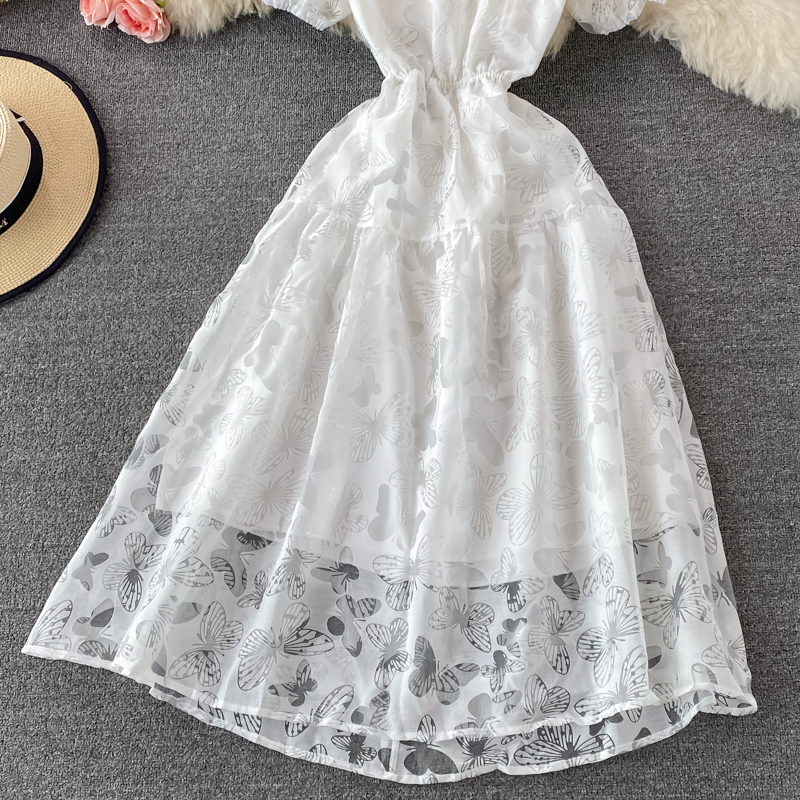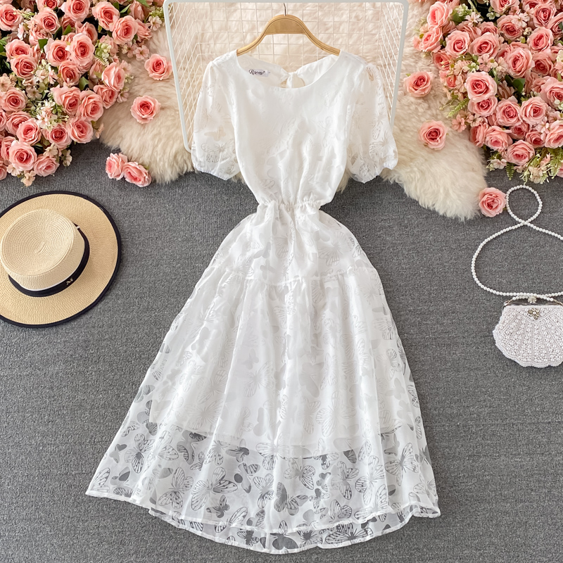 Cheap Dresses, Buy Quality Women’s Clothing Directly from China Suppliers:Sweet White Midi Dress For Women Summer Round Neck Short Sleeve Butterfly Pattern Vestidos Female Bow A Line Robe Fashion