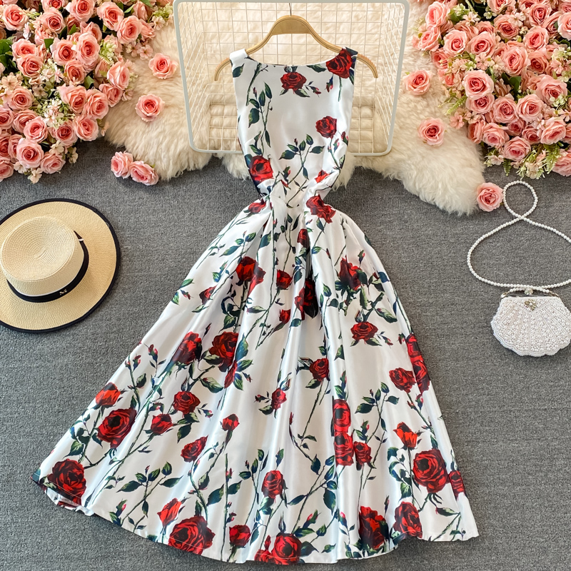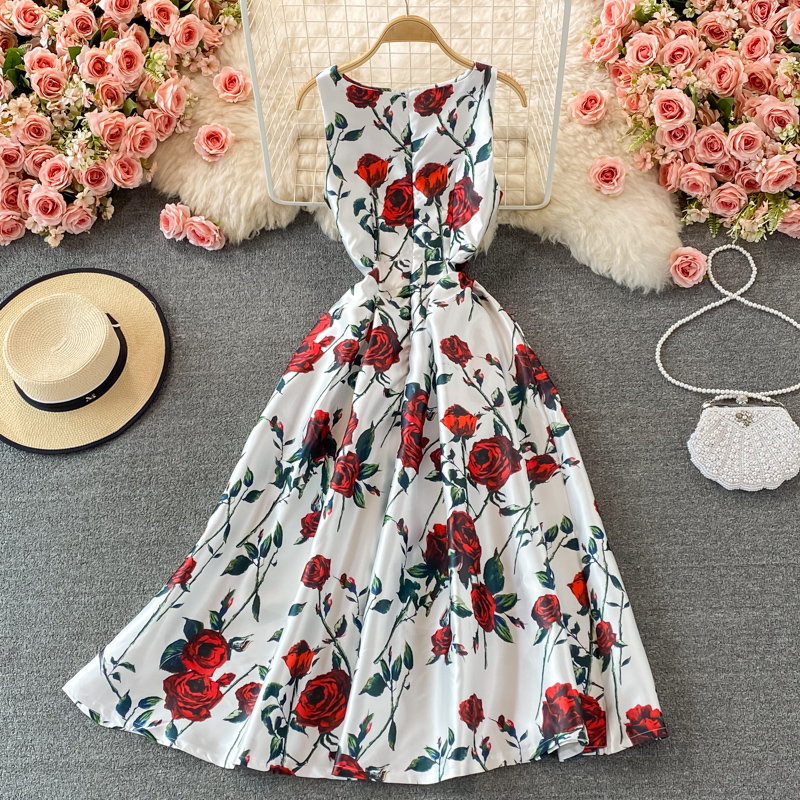 Cheap Dresses, Buy Quality Women’s Clothing Directly from China Suppliers:Women Red Floral Long Dress Summer Bohemian O Neck Sleeveless High Waist A Line Sleeveless Vestidos Casual Party Robe New
