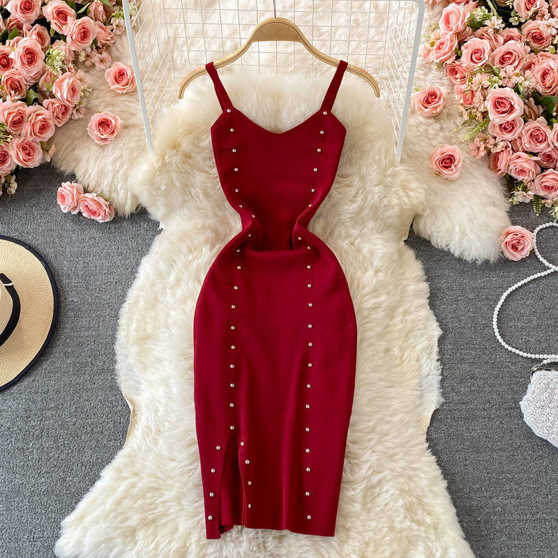 Cheap Dresses, Buy Quality Women’s Clothing Directly from China Suppliers:Summer Sexy Beading Knitted Bodycon Dress For Women Casual V Neck Sleeveless High Waist Spaghetti Strap Vestidos Lady Mini Robe