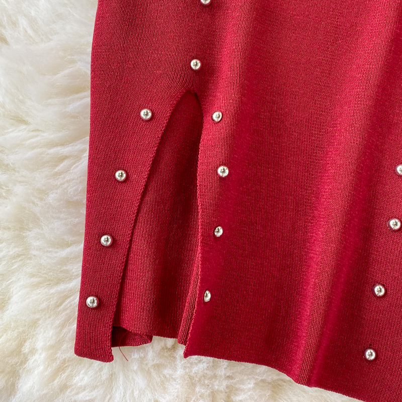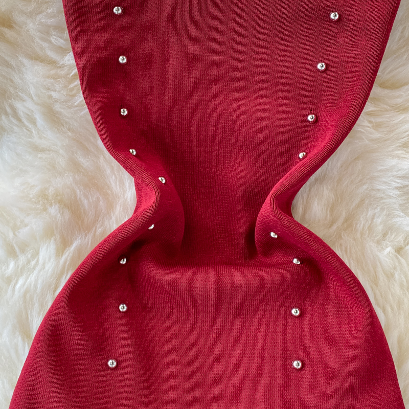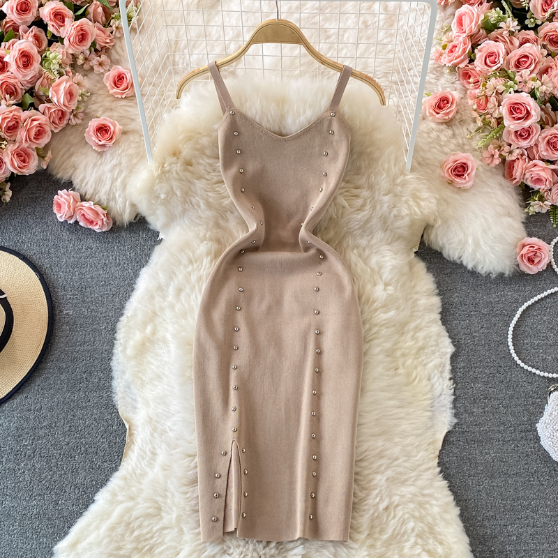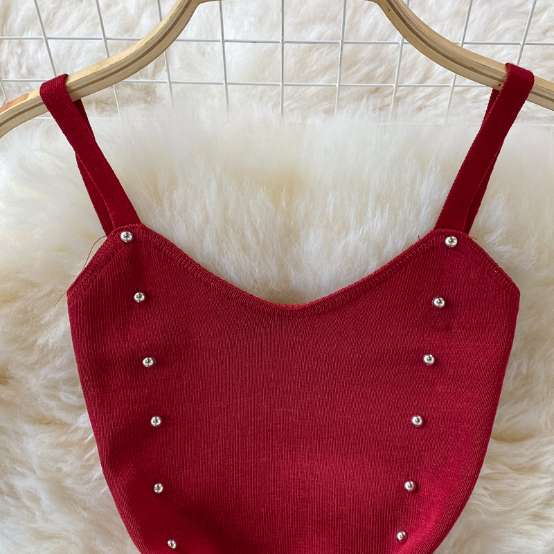 Summer Sexy Beading Knitted Bodycon Dress For Women Casual V-Neck Sleeveless High Waist Spaghetti Strap Vestidos Lady Mini Robe