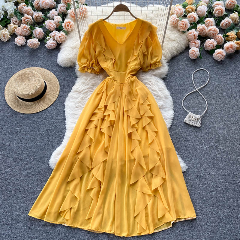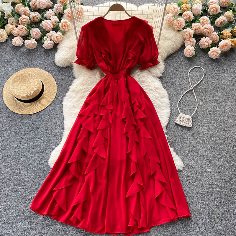 Cheap Dresses, Buy Quality Women’s Clothing Directly from China Suppliers:Vintage Women Chiffon Long Dress Elegant Ruffle Short Sleeve High Waist A Line Vacation Beach Maxi Vestidos Female Fashion