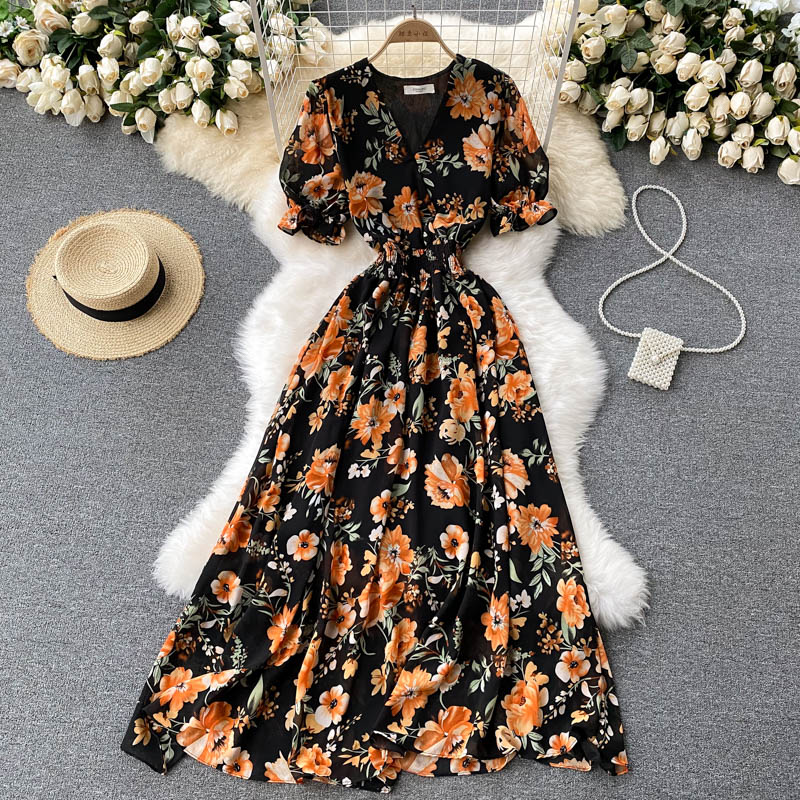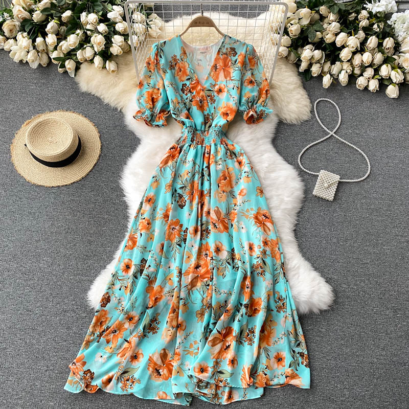 Cheap Dresses, Buy Quality Women’s Clothing Directly from China Suppliers:Bohemian Summer Floral Long Dress For Women Green/Beige/Black Slim A Line Vacation Beach Party Chiffon Maxi Vestidos New