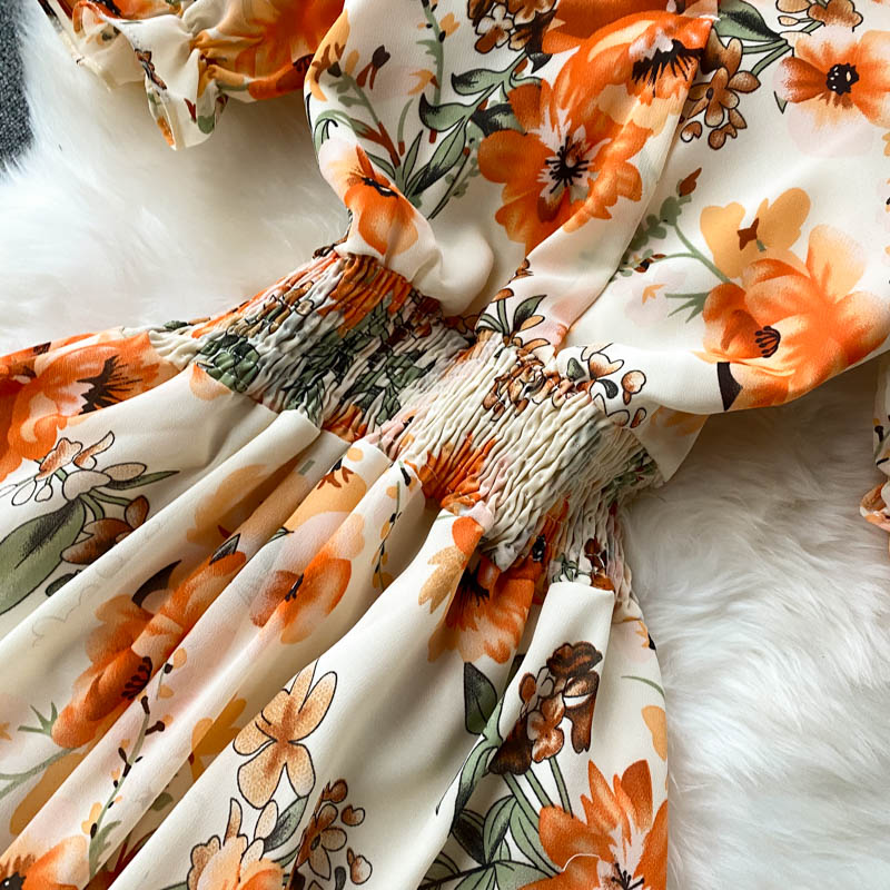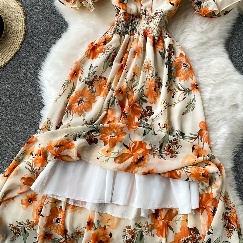 Bohemian Summer Floral Long Dress For Women Green/Beige/Black Slim A-Line Vacation Beach Party Chiffon Maxi Vestidos New