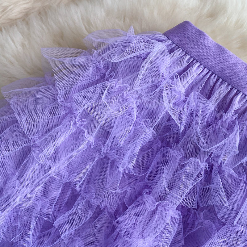 Purple/Blue/Orange Mesh Long Skirt Casual High Waist Cascading Ruffle Midi Faldas Female Autumn Draped Saias New Fashion