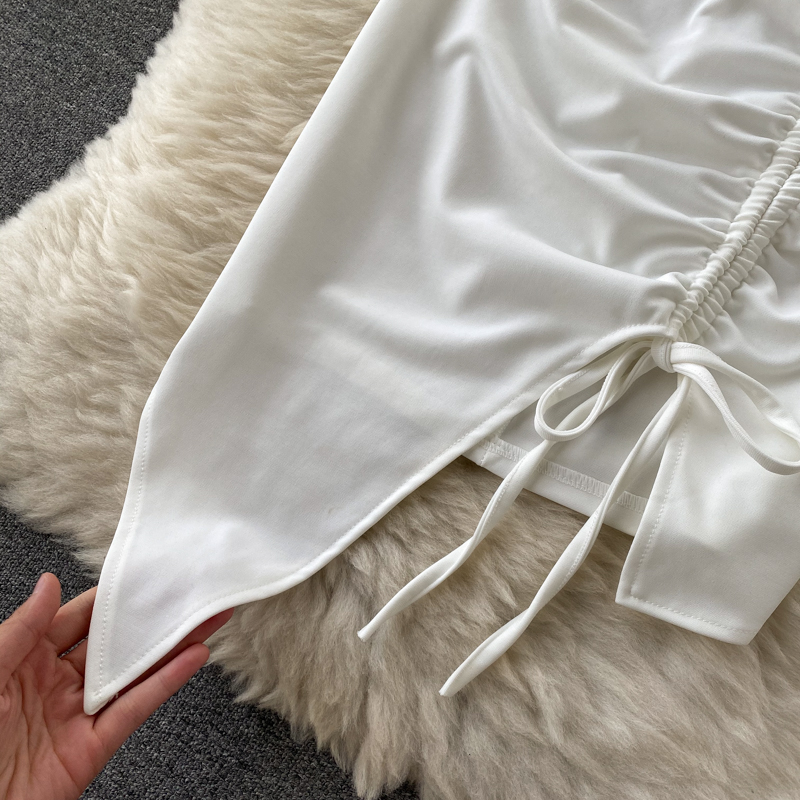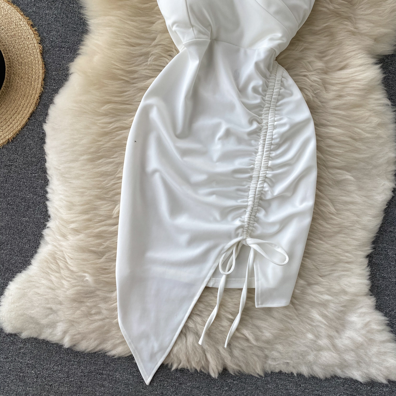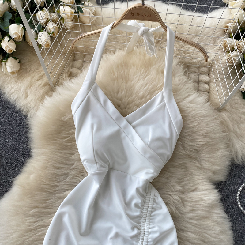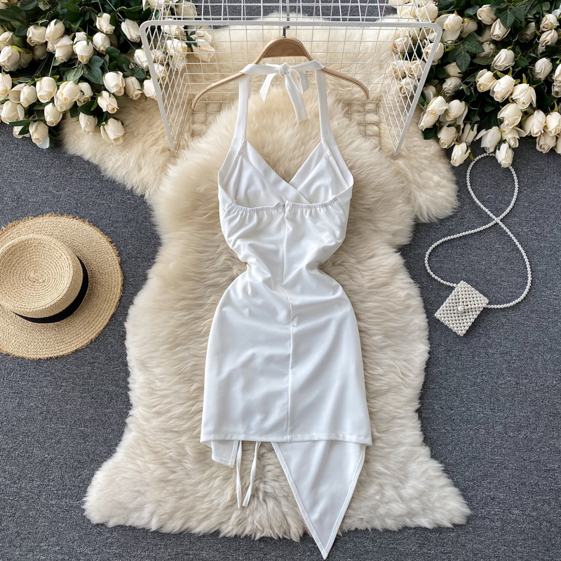 Summer Sexy Drawstring Bodycon Dress Women White Halter Mini Vestidos Ladies High Waist Sleeveless Club Party Robe Female