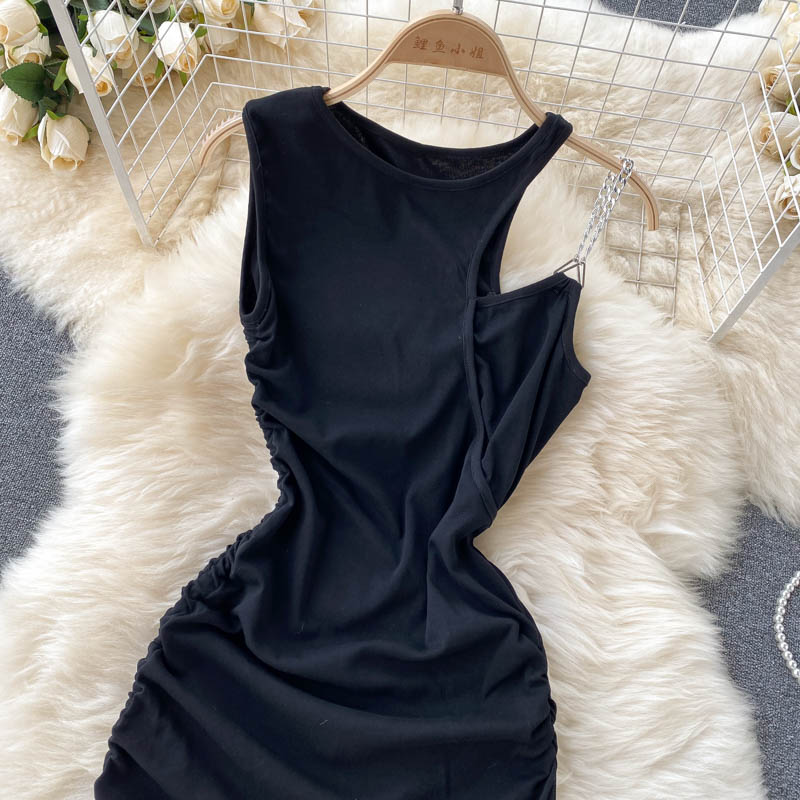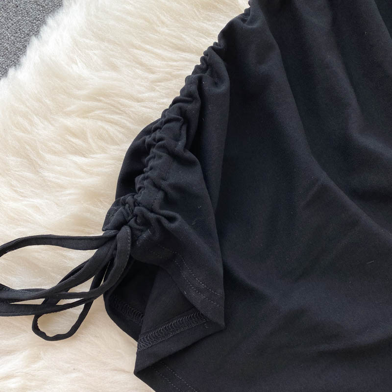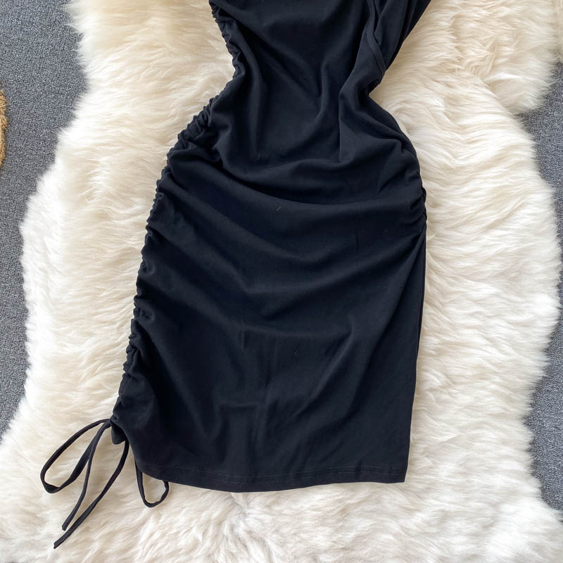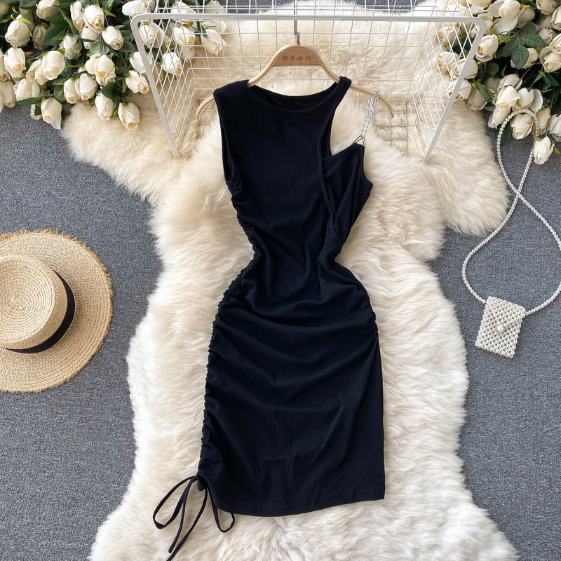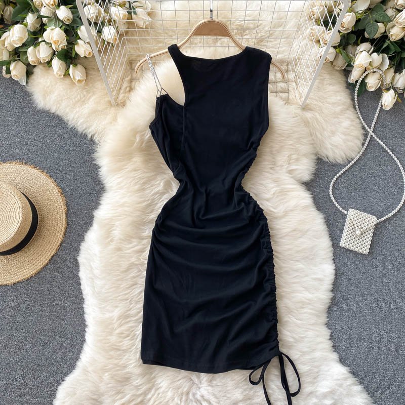 Sexy Drawstring Bodycon Dress Women Black High Waist Sleeveless Mini Vestidos Ladies Summer Hollow Out Party Short Robe New
