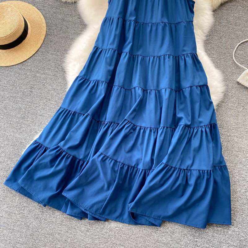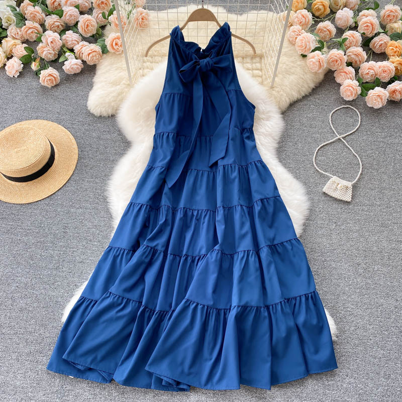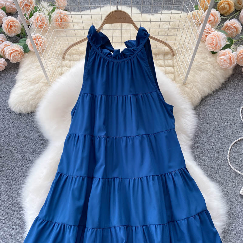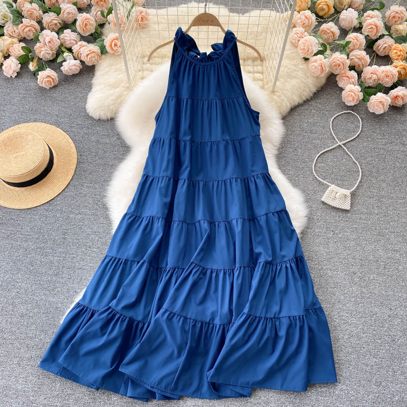 Cheap Dresses, Buy Quality Women’s Clothing Directly from China Suppliers:Vintage Blue Ruffled Collar Midi Dress Women Summer Elegant Sleeveless Loose Vestidos Female Ruffle Casual Bandage Robe New