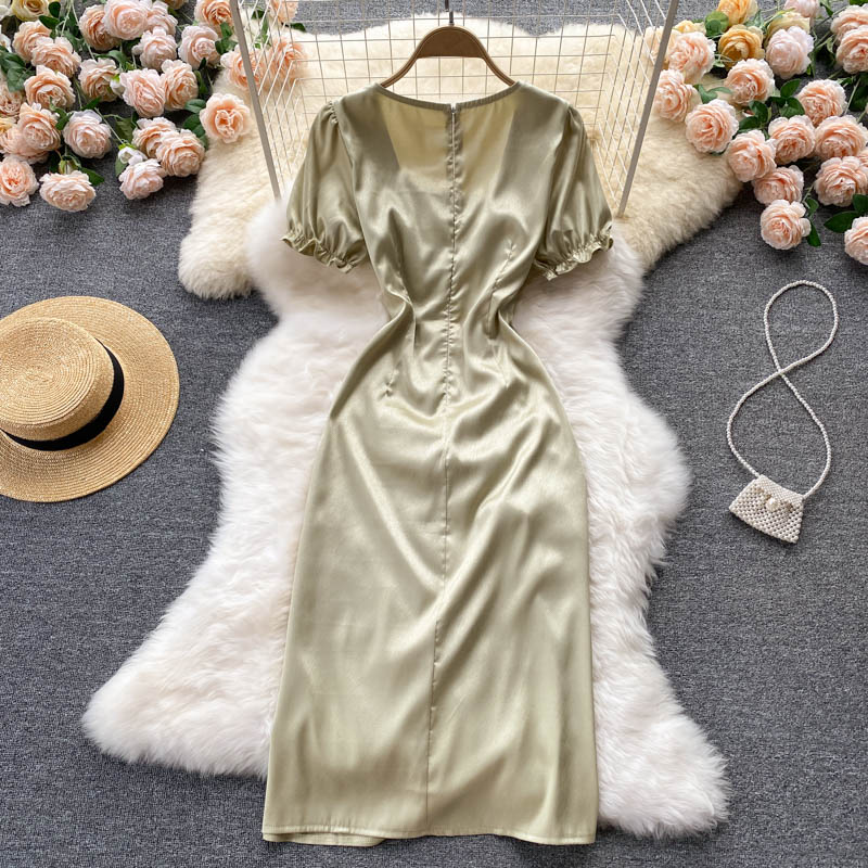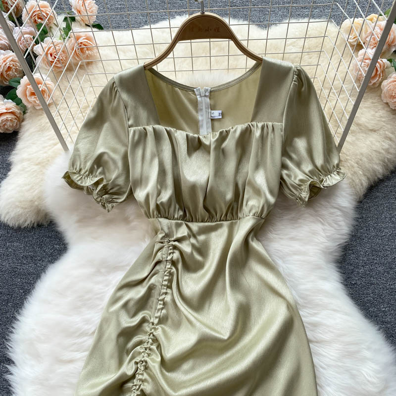 Cheap Dresses, Buy Quality Women’s Clothing Directly from China Suppliers:Sexy Square Collar Drawstring Bodycon Dress For Women Summer Short Sleeve High Waist Split Vestidos Party Beach Robe New