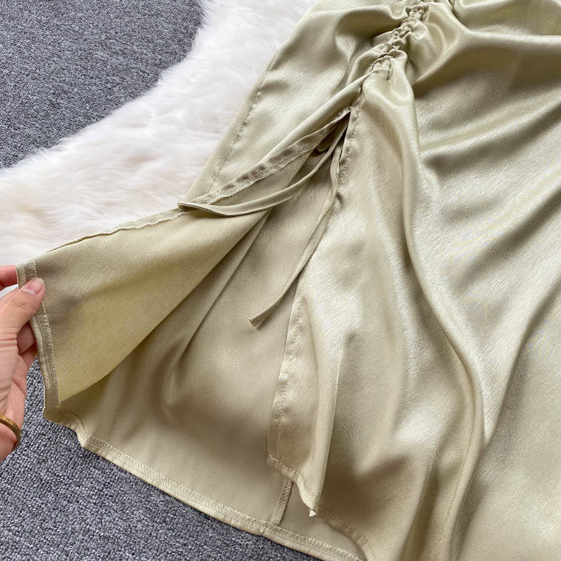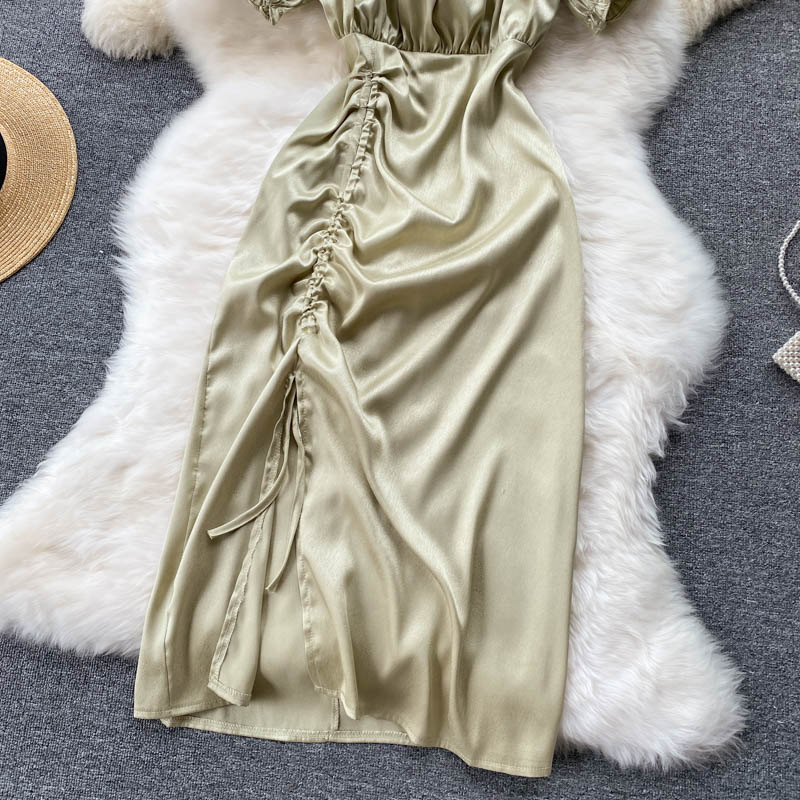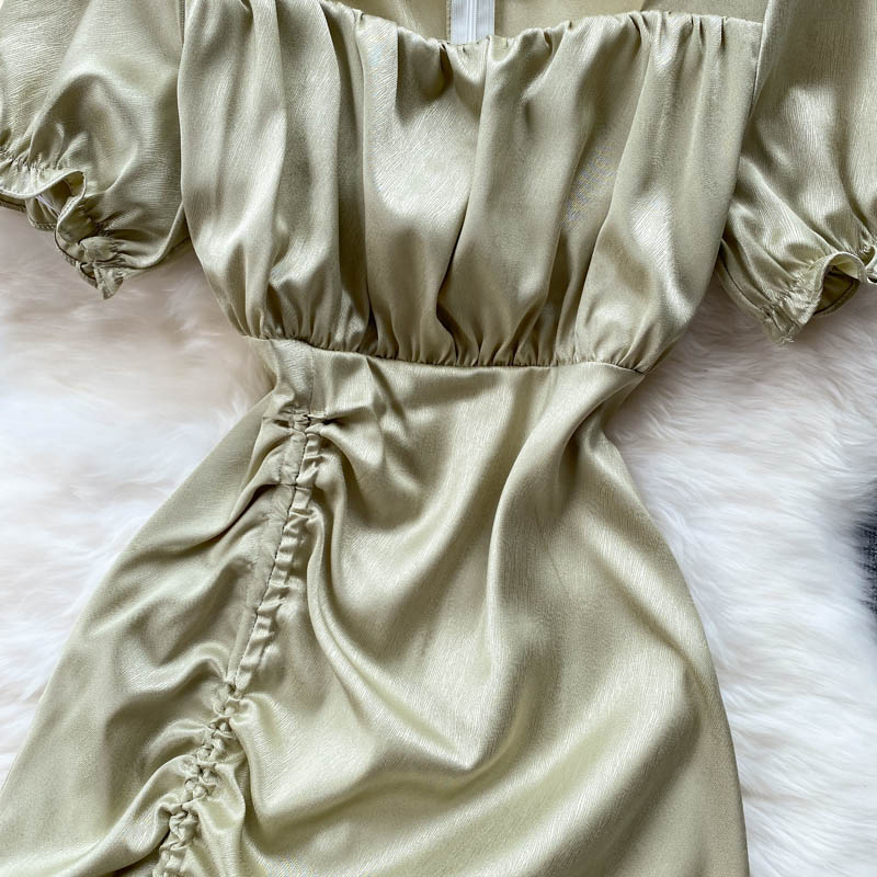 Sexy Square Collar Drawstring Bodycon Dress For Women Summer Short Sleeve High Waist Split Vestidos Party Beach Robe New