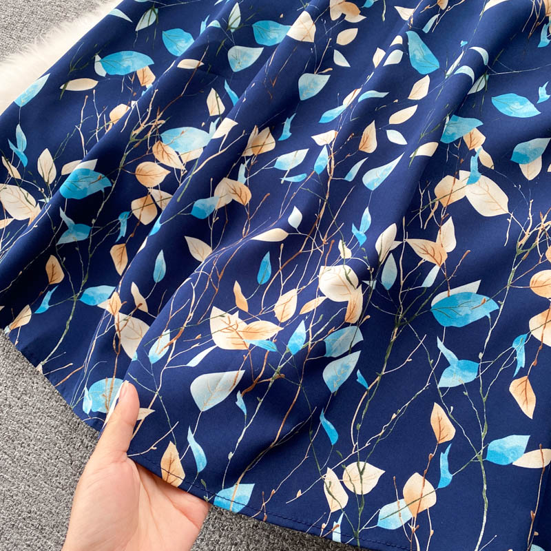 Summer Vintage Printed Mini Dress For Women Elegant Round Neck Short Sleeve High Waist A-Line Slim White/Blue Vestidos Female
