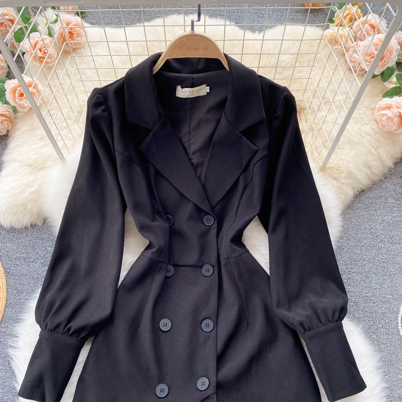 Cheap Dresses, Buy Quality Women’s Clothing Directly from China Suppliers:Autumn Vintage Black Double Breasted Ruffle Mini Dress Casual Notched Collar Lantern Long Sleeve High Waist Loose Outerwear