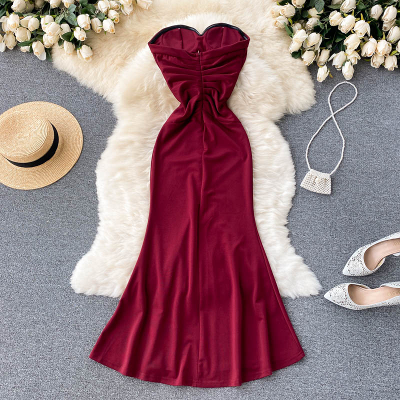 Summer Sexy Strapless Red Party Long Dress Women Elegant Off Shoulder Sleeveless High Waist Mermaid Maxi Vestidos Female Robe