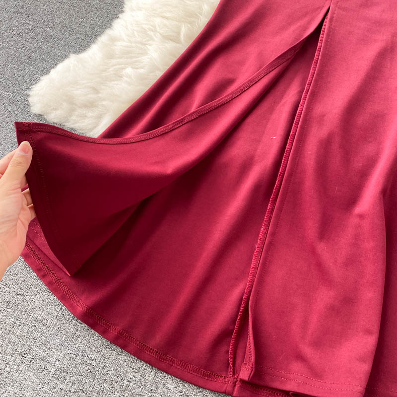 Autumn Women Pleated Midi Dress Vintage Red/Purple/Green Draped Party Vestidos Elegant Casual High Waist Long Sleeve Robe