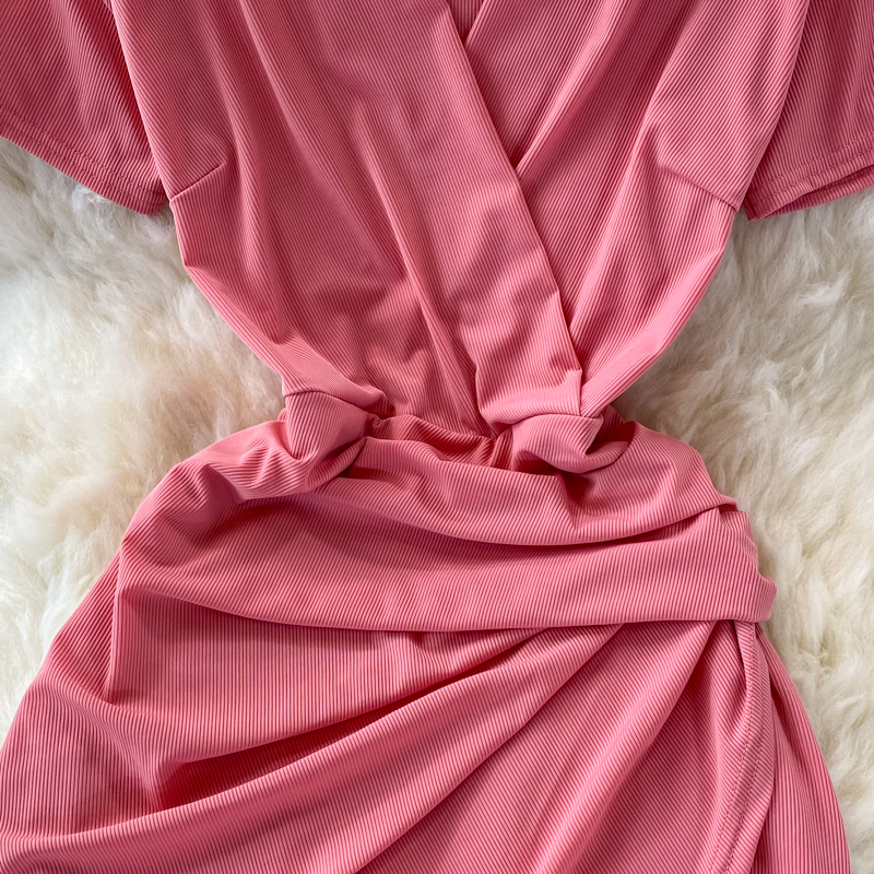 Vintage Black/Green Draped Bodycon Midi Dress For Women Summer Casual V-Neck Short Sleeve High Waist Party Robe Female New