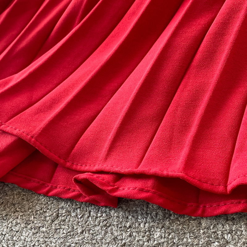 HomeDresses Autumn Women Pleated Midi Dress Vintage Red/Purple/Green Draped Party Vestidos Elegant Casual High Waist Long Sleeve Robe
