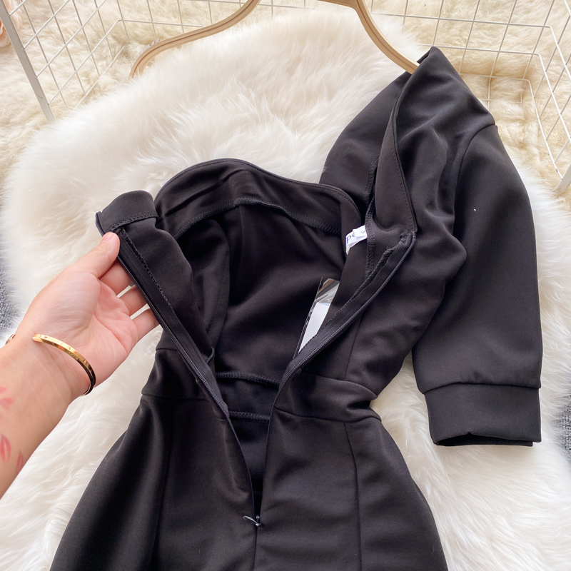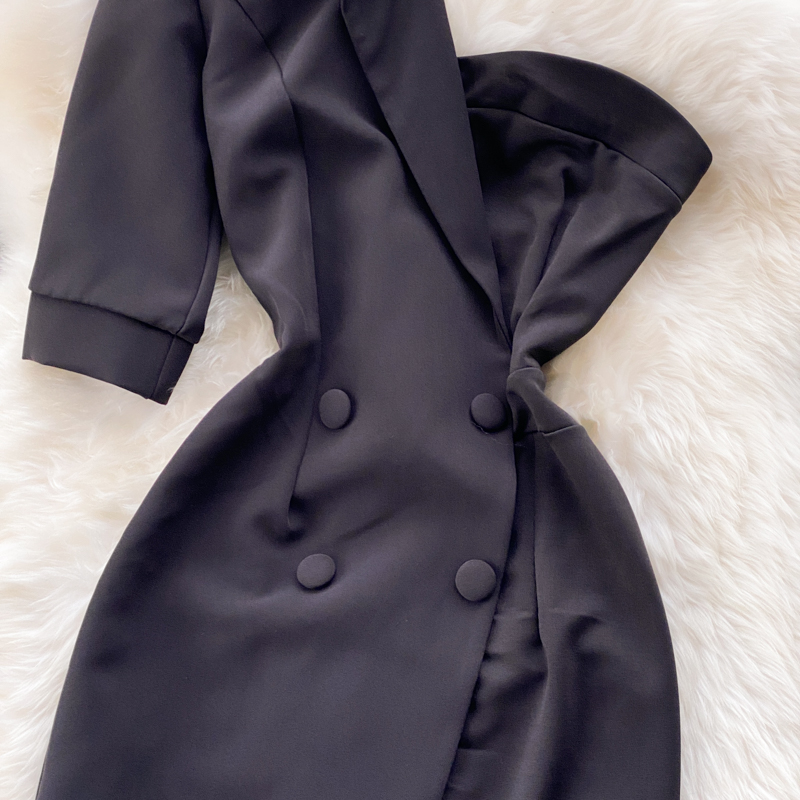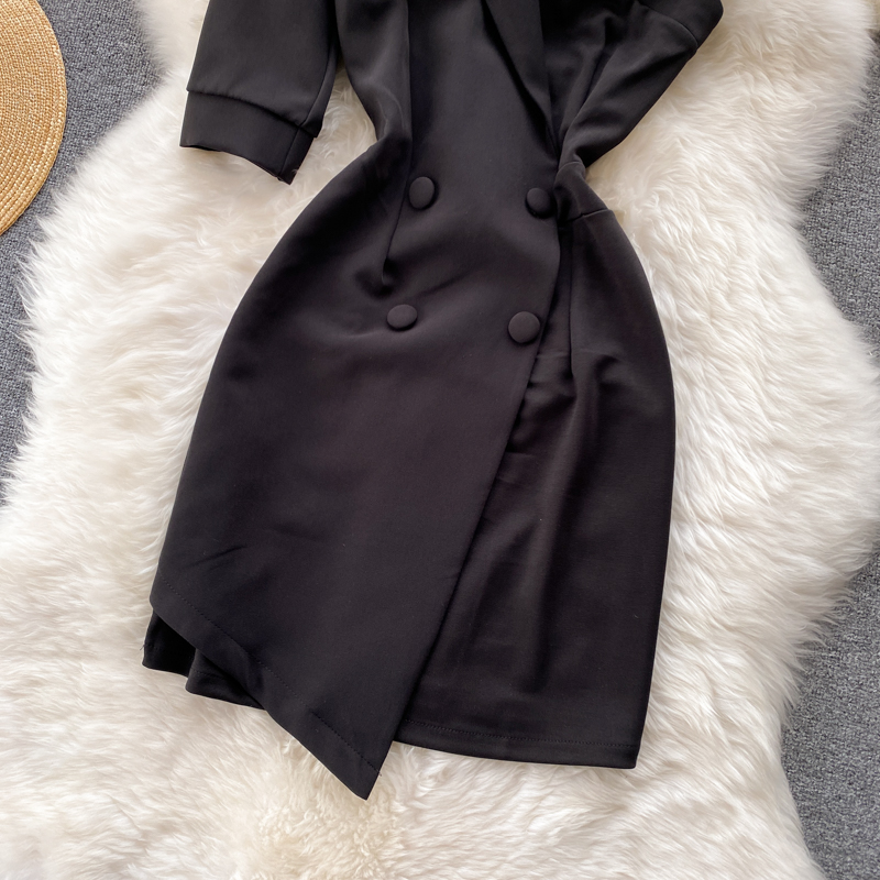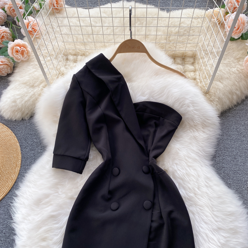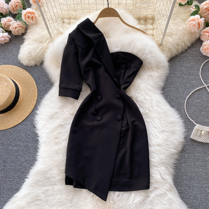 Cheap Dresses, Buy Quality Women’s Clothing Directly from China Suppliers:Summer Sexy Irregular One Shoulder Double Breasted Black Mini Dress For Women Short Sleeve High Waist Slim Vestidos Female
