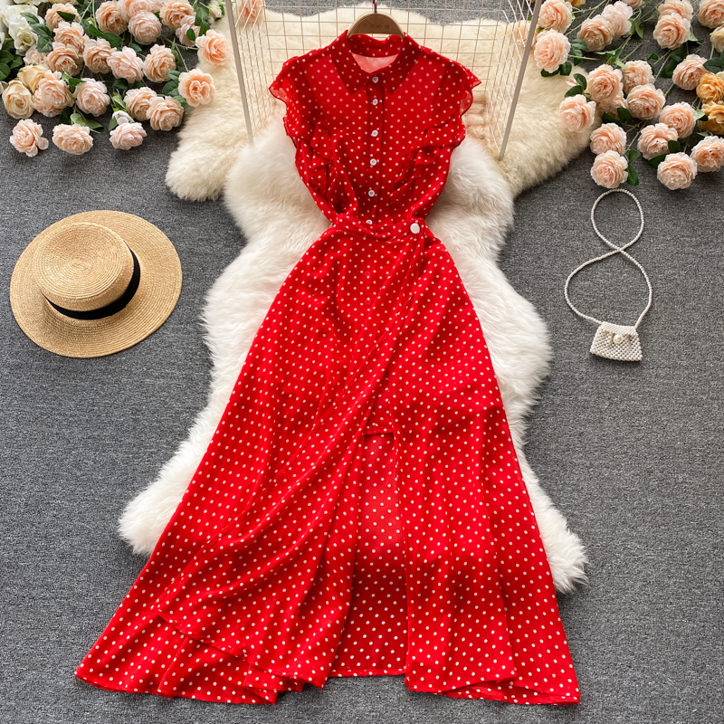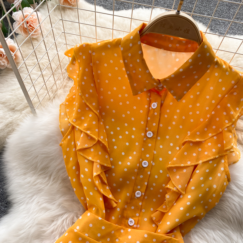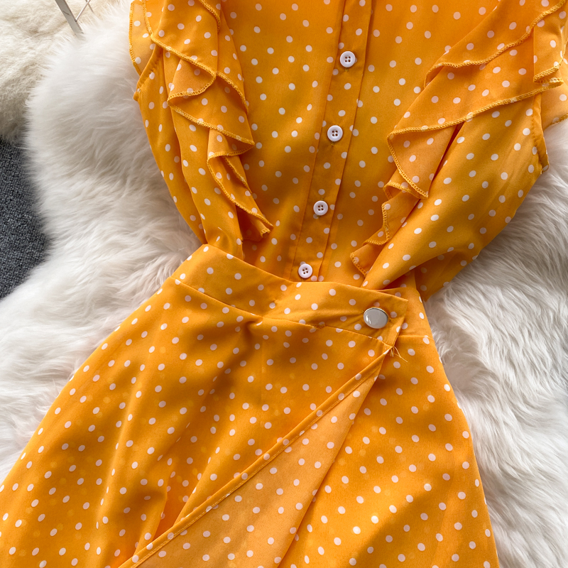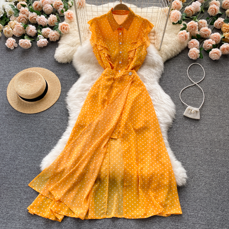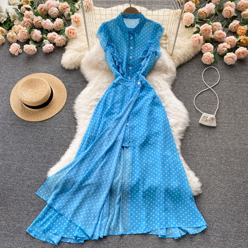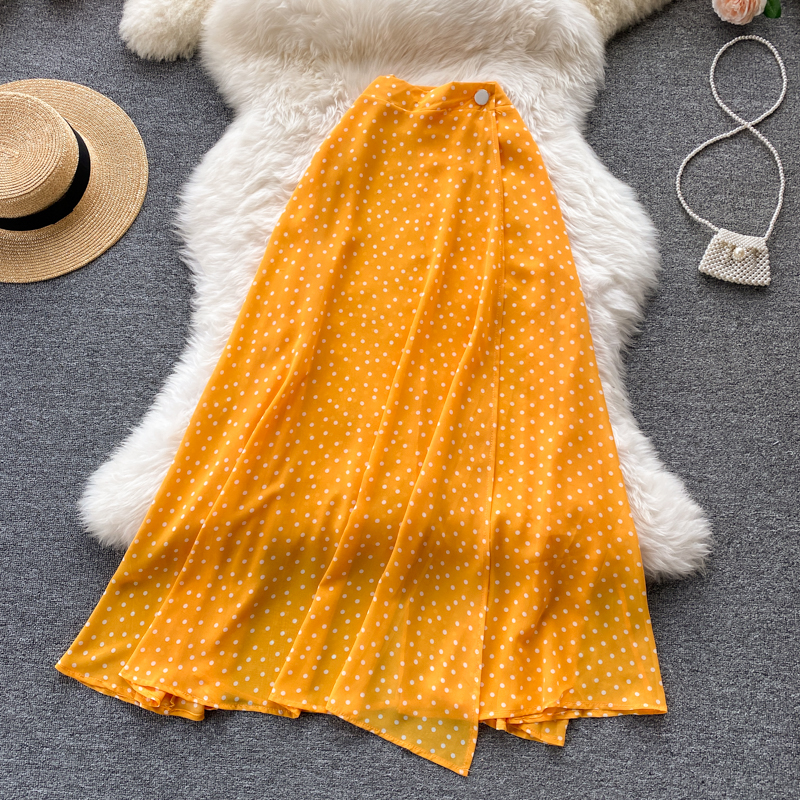 Summer Vintage Polka Dot Two Piece Set Women Casual Turn-Down Collar Single Breasted Mini Dress + Irregular Long Skirt New