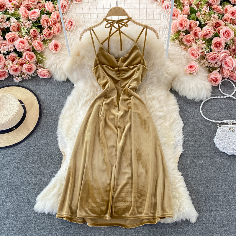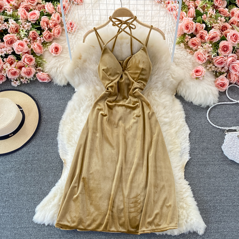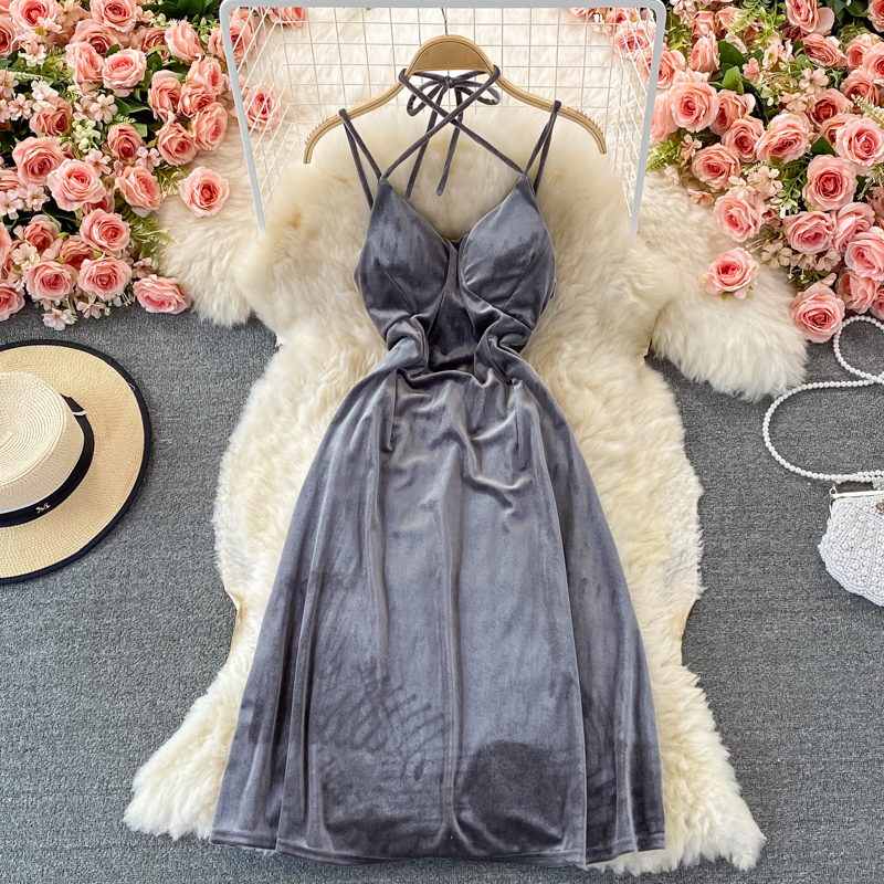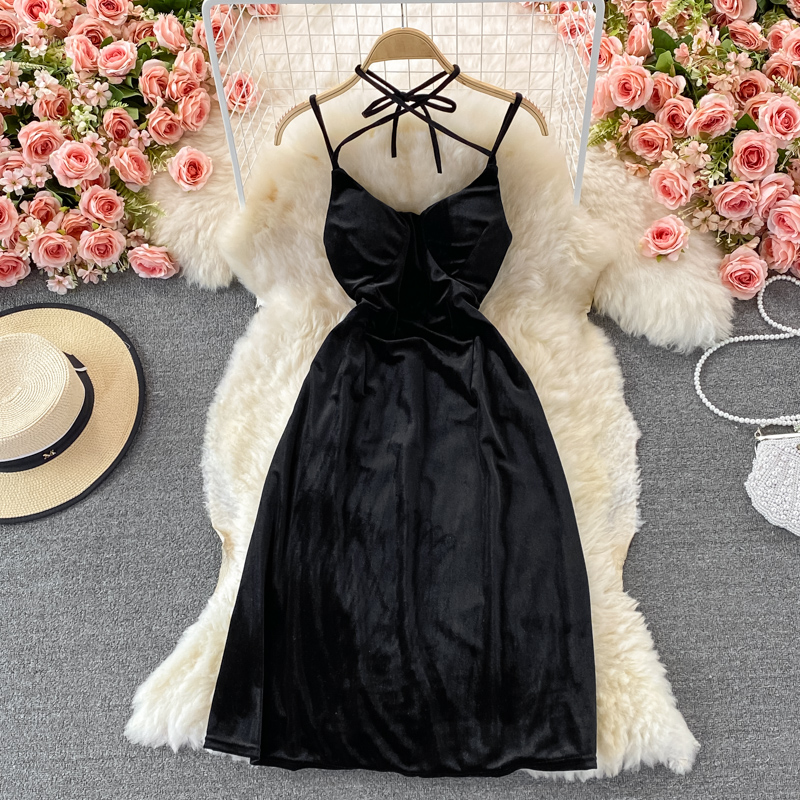 Cheap Dresses, Buy Quality Women’s Clothing Directly from China Suppliers:Sexy Halter Spaghetti Strap Party Velvet Dress Women Elegant Open Back Sleeveless High Waist Split Vestidos Female Summer New