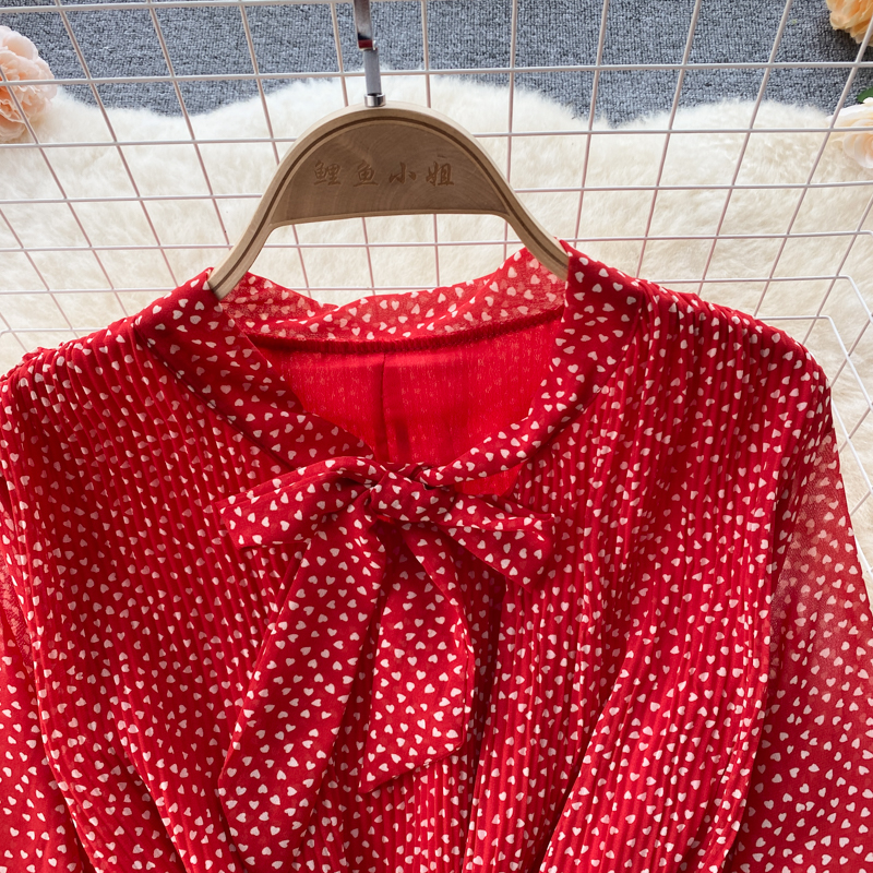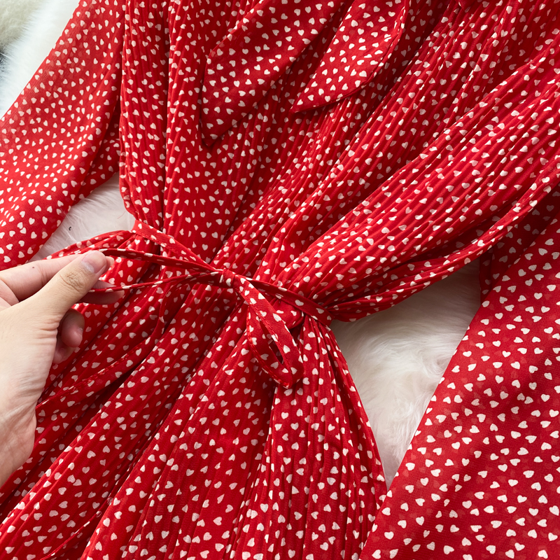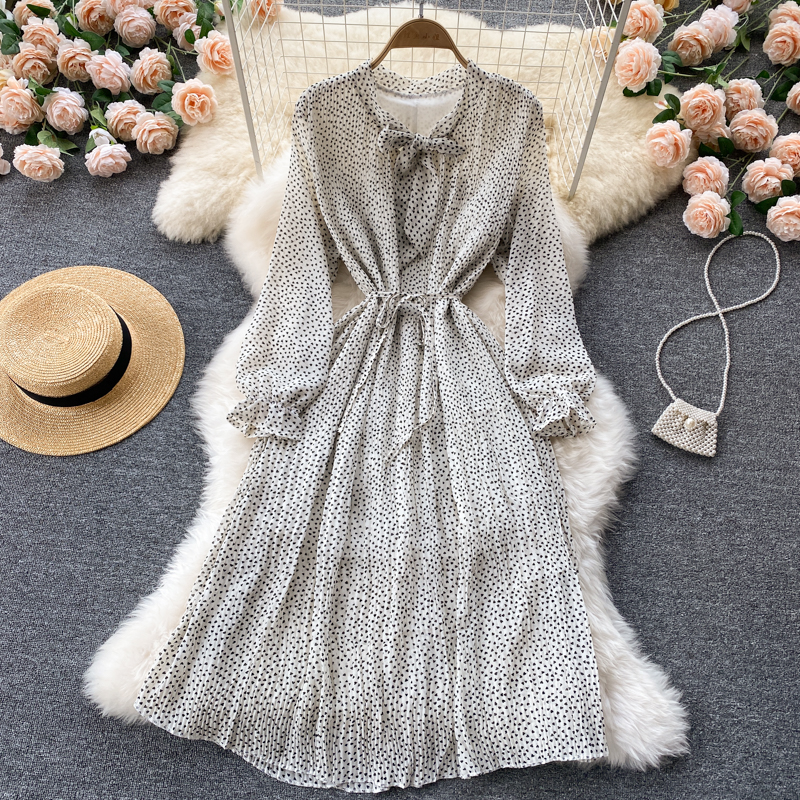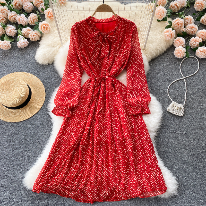 Autumn Women Polka Dot Red/Brown/White Dress Vintage Flare Long Sleeve High Waist Draped Slim Vestidos Female Casual Robe New
