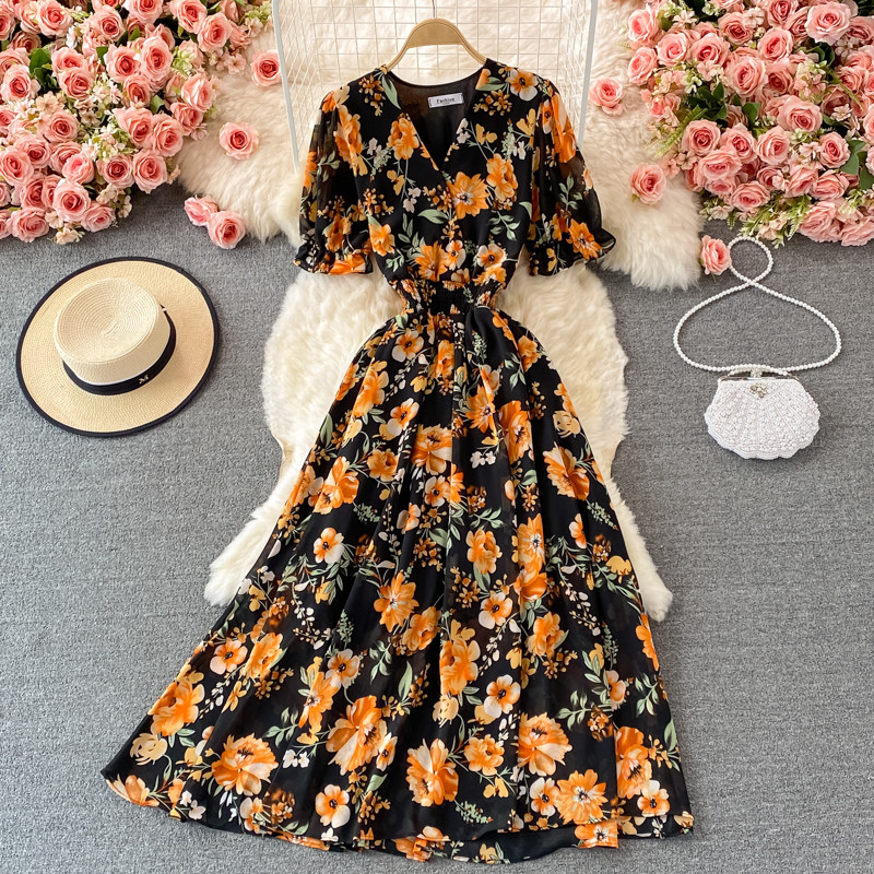 Cheap Dresses, Buy Quality Women’s Clothing Directly from China Suppliers:Summer Bohemian Women Chiffon Long Dress Women Sexy V Neck Flare Short Sleeve High Waist A Line Party Maxi Robe Female New
