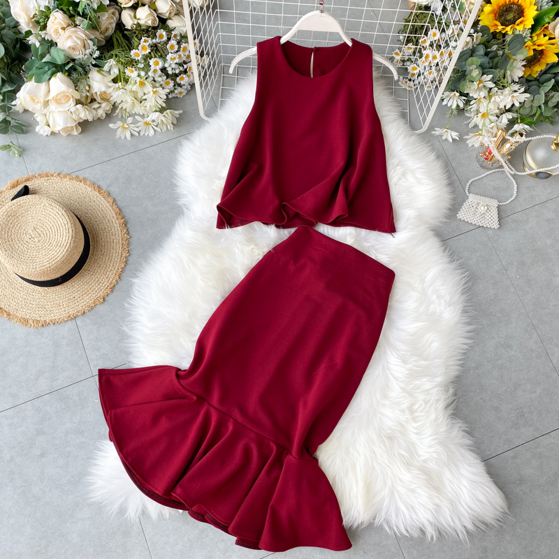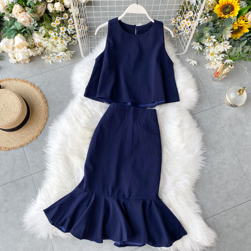 Cheap Dress Suits, Buy Quality Women’s Clothing Directly from China Suppliers:European New Fashion Summer Women Two Piece Set Casual Sleeveless Round Neck Tops + Mermaid Skirt Green/Blue/Black 2pc Set