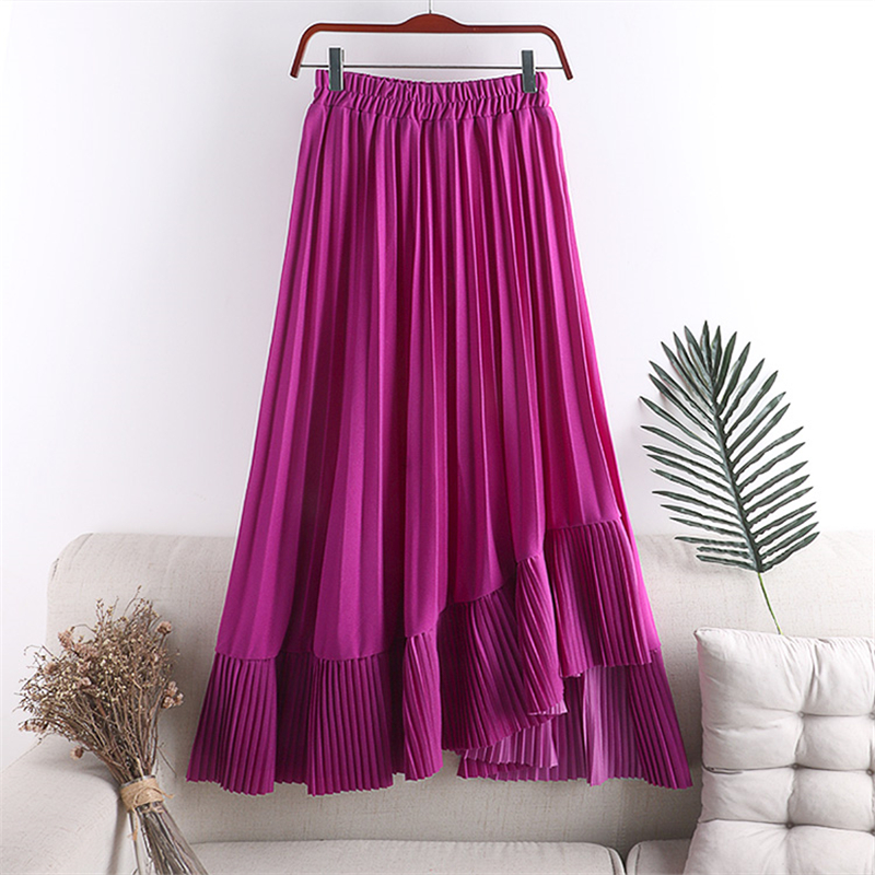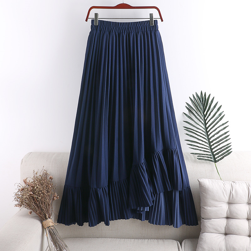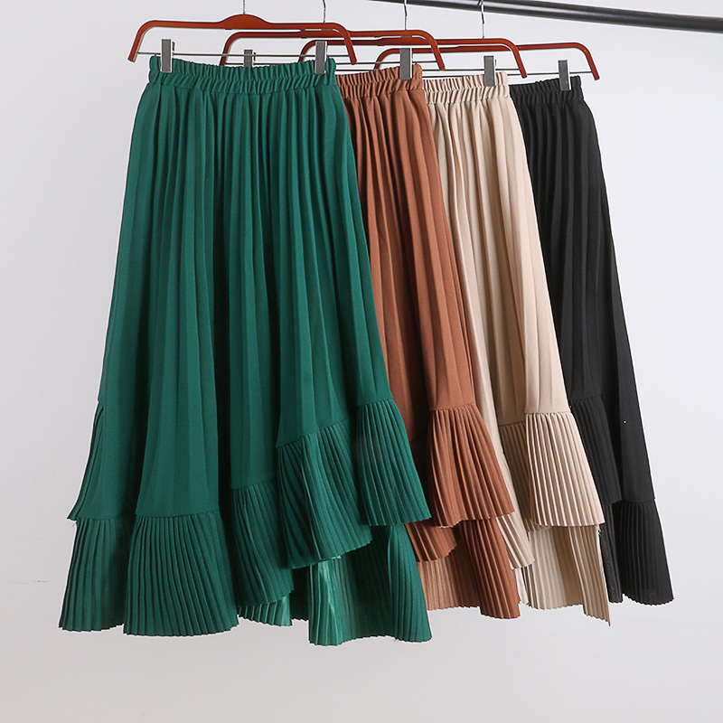 Cheap Skirts, Buy Quality Women’s Clothing Directly from China Suppliers:Spring Summer Women Irregular Skirt Vintage High Waist Big Swing Faldas Saia Korean Green/Black/Khaki Pleated Skirts For Female
