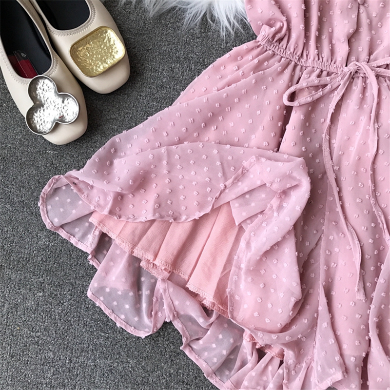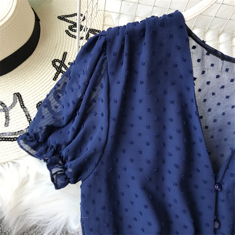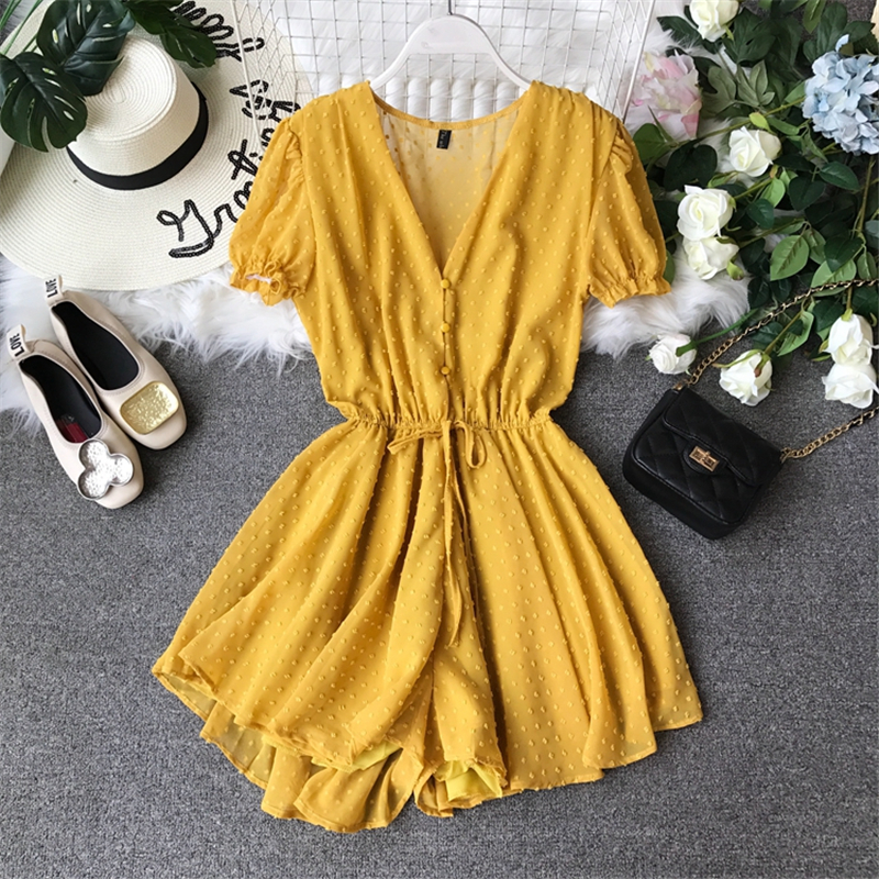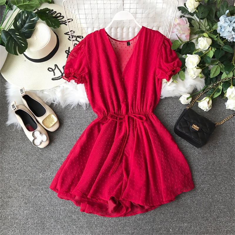 Summer Vintage Chiffon Rompers Elegant V-neck Short Sleeve Black/Red/White Polka Dot Playsuits For Female Sweet Jumpsuits