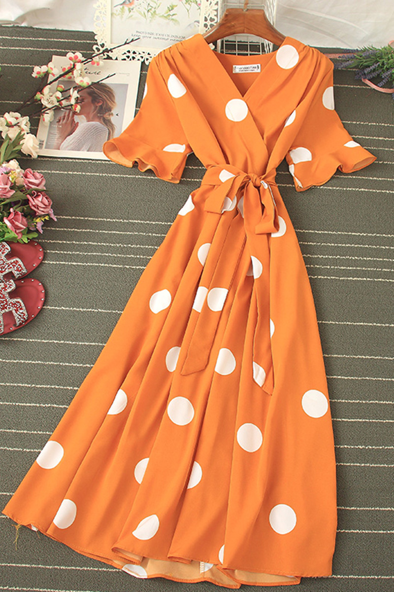 Cheap Dresses, Buy Quality Women’s Clothing Directly from China Suppliers:Vintage Polka Dot Midi Dress Summer Sexy V neck Flare Sleeve Casual Vestidos Verano Elegant Blue/White Sashes Dresses New